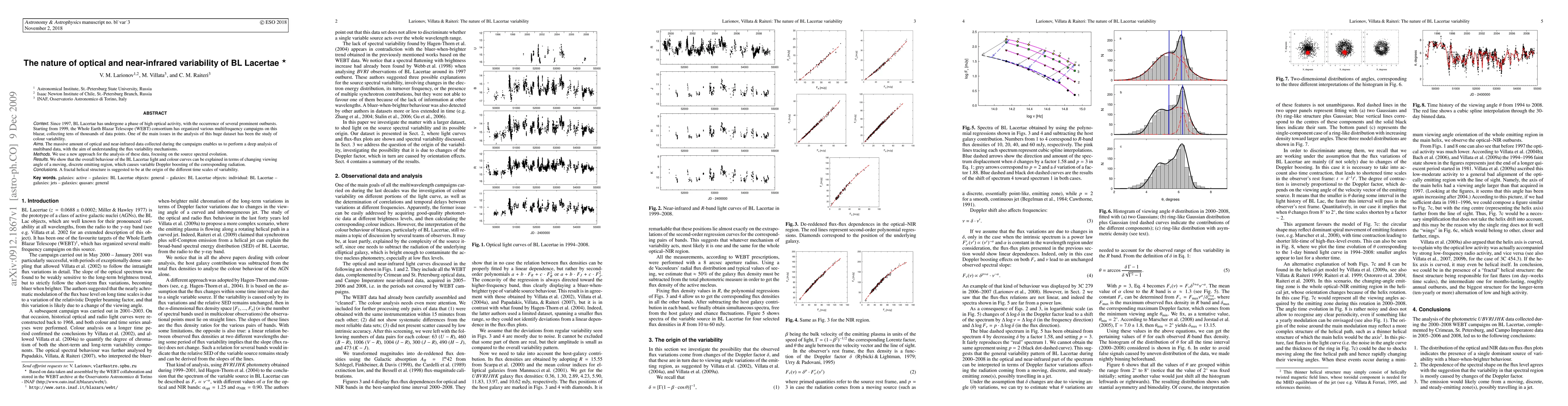 This research analyzes the optical and near-infrared variability of BL Lacertae, a blazar with high activity since 1997. Utilizing a large dataset from the WEBT consortium, the study reveals that the light and color curves of BL Lacertae can be explained by a changing viewing angle of a discrete emitting region, causing variable Doppler boosting. The variability's different time scales are suggested to originate from a fractal helical structure.