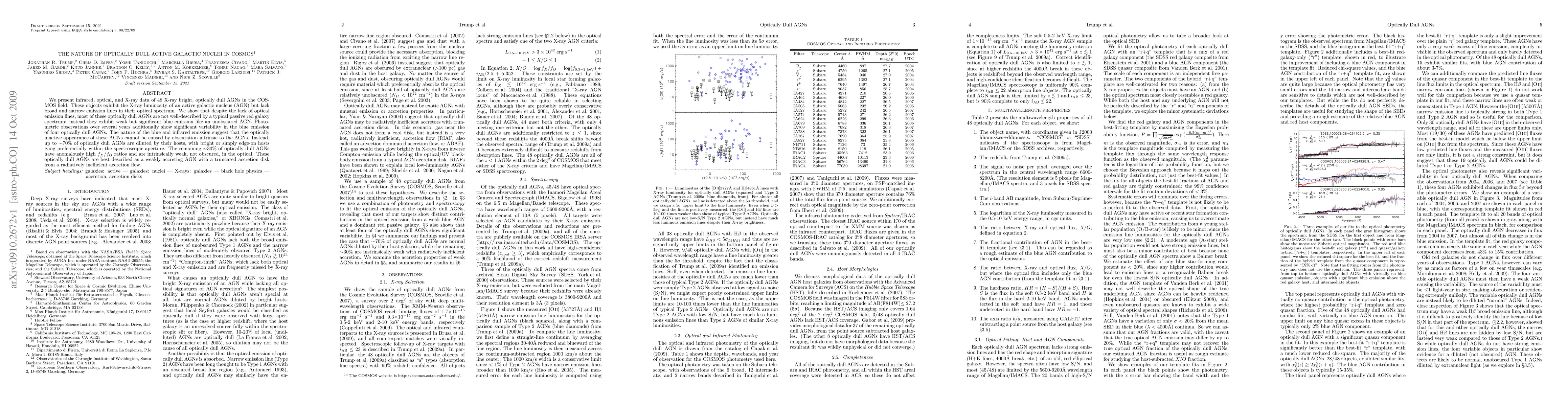 We present infrared, optical, and X-ray data of 48 X-ray bright, optically dull AGNs in the COSMOS field. These objects exhibit the X-ray luminosity of an active galactic nucleus (AGN) but lack broad and narrow emission lines in their optical spectrum. We show that despite the lack of optical emission lines, most of these optically dull AGNs are not well-described by a typical passive red galaxy spectrum: instead they exhibit weak but significant blue emission like an unobscured AGN. Photometric observations over several years additionally show significant variability in the blue emission of four optically dull AGNs. The nature of the blue and infrared emission suggest that the optically inactive appearance of these AGNs cannot be caused by obscuration intrinsic to the AGNs. Instead, up to ~70% of optically dull AGNs are diluted by their hosts, with bright or simply edge-on hosts lying preferentially within the spectroscopic aperture. The remaining ~30% of optically dull AGNs have anomalously high f_x/f_o ratios and are intrinsically weak, not obscured, in the optical. These optically dull AGNs are best described as a weakly accreting AGN with a truncated accretion disk from a radiatively inefficient accretion flow.