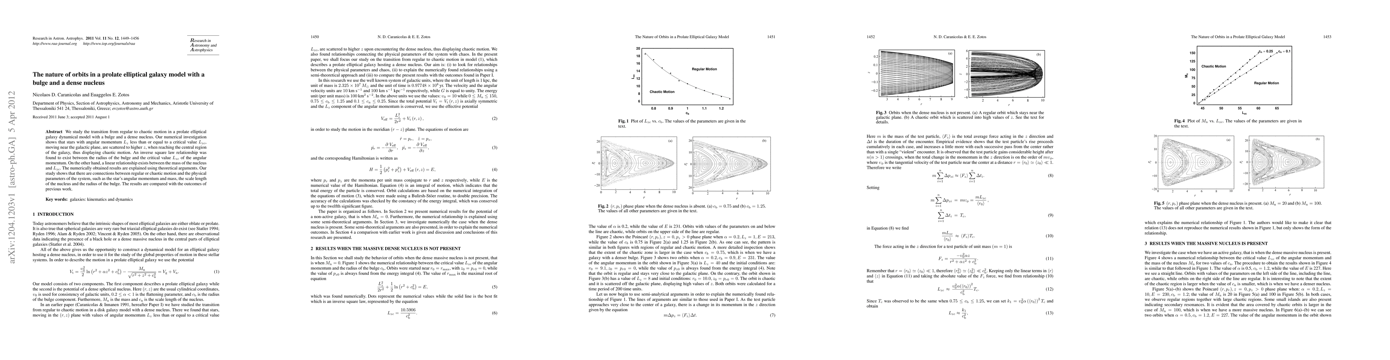 A study of prolate elliptical galaxy models with a bulge and dense nucleus found that stars with certain angular momentum values exhibit chaotic motion when approaching the galactic center.