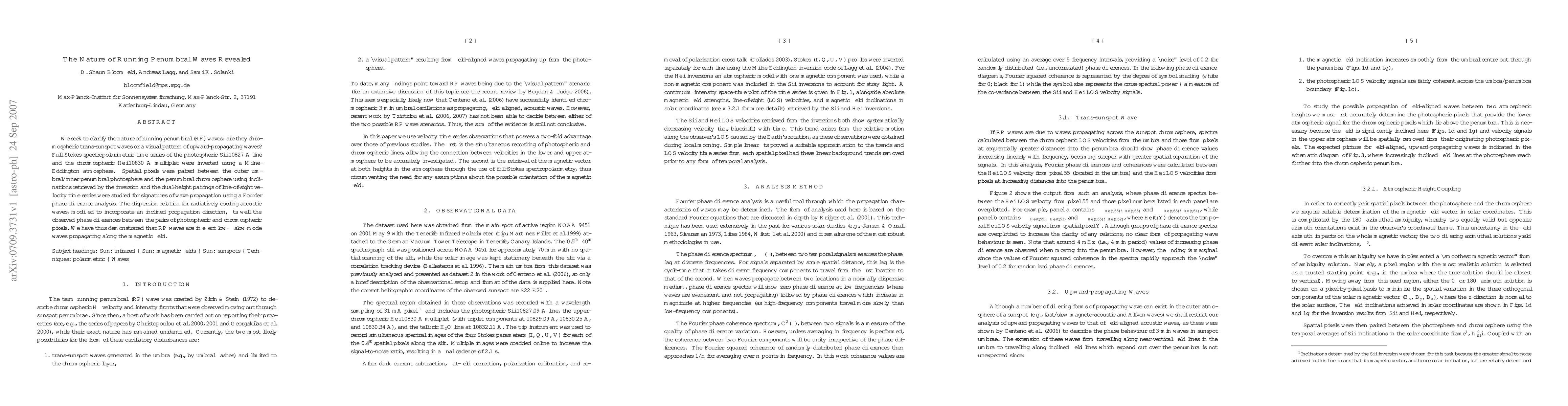 This study reveals that running penumbral waves (RP waves) are low-beta slow-mode waves propagating along the magnetic field, rather than a visual pattern of upward-propagating waves. The analysis of photospheric and chromospheric spectral lines supports the wave's nature as a chromospheric trans-sunspot wave.