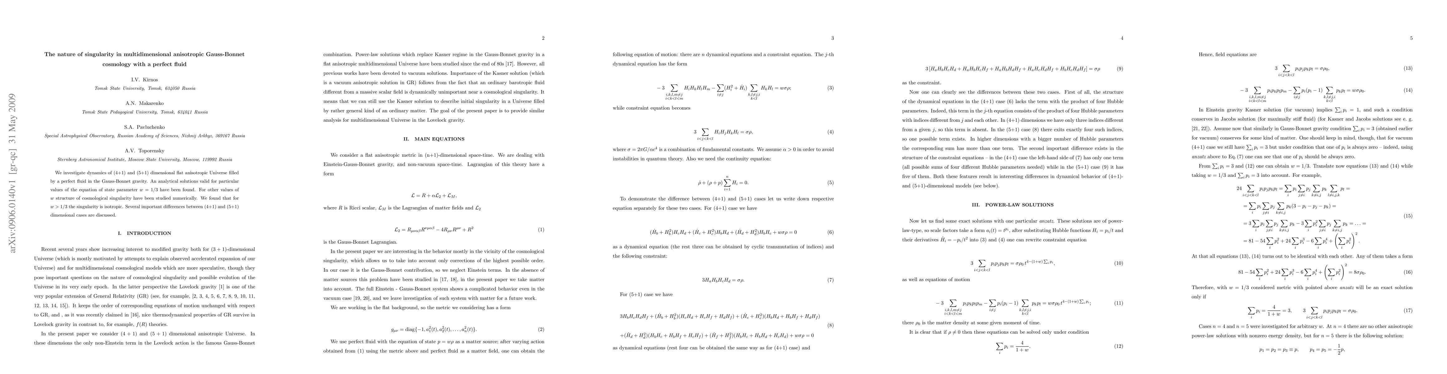 We investigate dynamics of (4+1) and (5+1) dimensional flat anisotropic Universe filled by a perfect fluid in the Gauss-Bonnet gravity. An analytical solutions valid for particular values of the equation of state parameter $w=1/3$ have been found. For other values of $w$ structure of cosmological singularity have been studied numerically. We found that for $w > 1/3$ the singularity is isotropic. Several important differences between (4+1) and (5+1) dimensional cases are discussed.