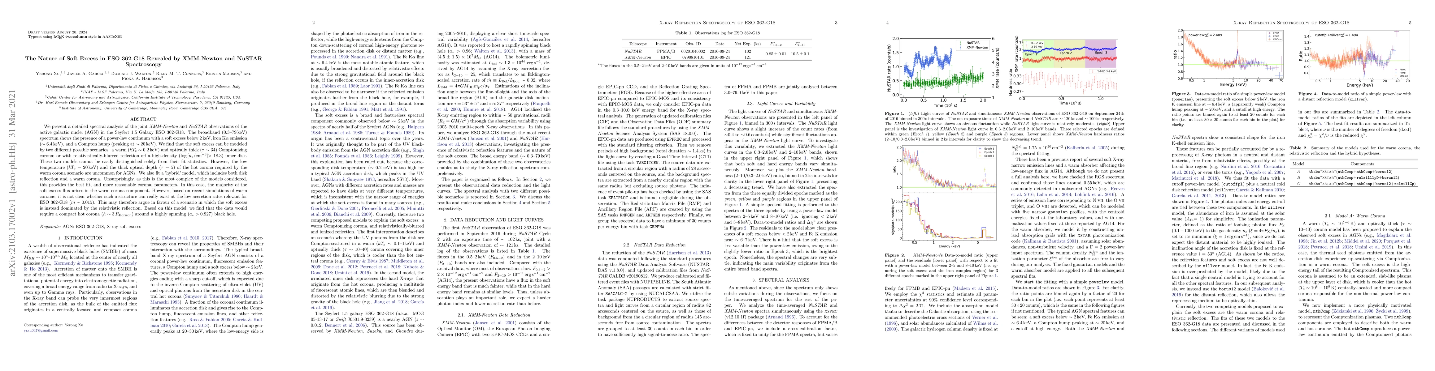 This paper analyzes the XMM-Newton and NuSTAR spectra of the AGN in ESO 362-G18, revealing a soft excess below 2 keV. The soft excess could be modeled by either a warm Comptonizing corona or relativistically-blurred reflection from a high-density inner disk, with the latter being more plausible given the low accretion rate.
