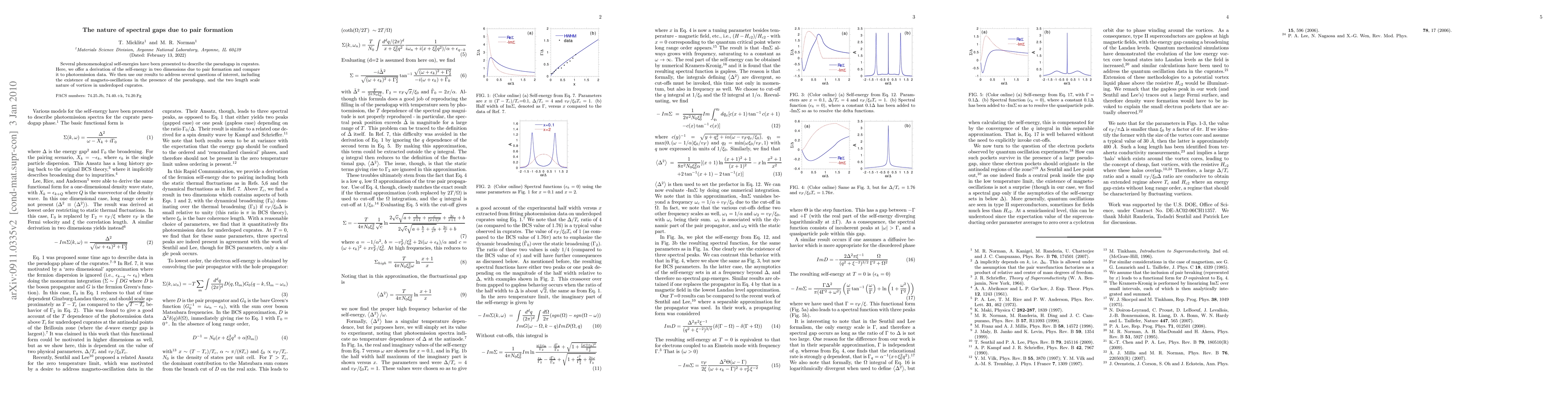 Several phenomenological self-energies have been presented to describe the pseudogap in cuprates. Here, we offer a derivation of the self-energy in two dimensions due to pair formation and compare it to photoemission data. We then use our results to address several questions of interest, including the existence of magneto-oscillations in the presence of the pseudogap, and the two length scale nature of vortices in underdoped cuprates.
