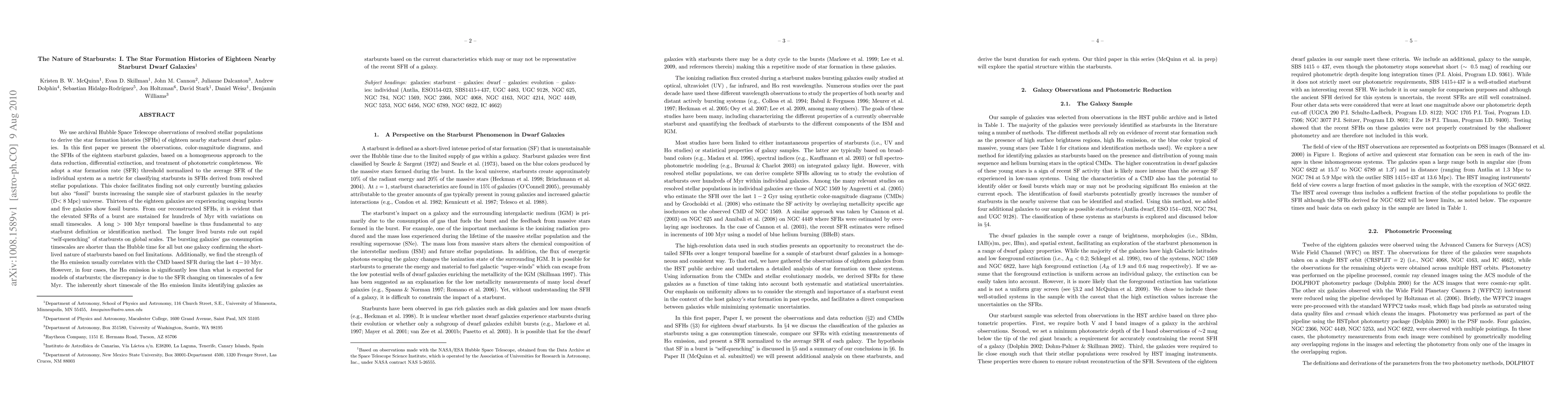 This paper investigates the star formation histories (SFHs) of 18 nearby starburst dwarf galaxies using HST observations, revealing that 13 galaxies are currently experiencing bursts while 5 show fossil bursts. The study emphasizes the importance of a long temporal baseline for starburst identification, highlighting the short-lived nature of starbursts due to fuel limitations.