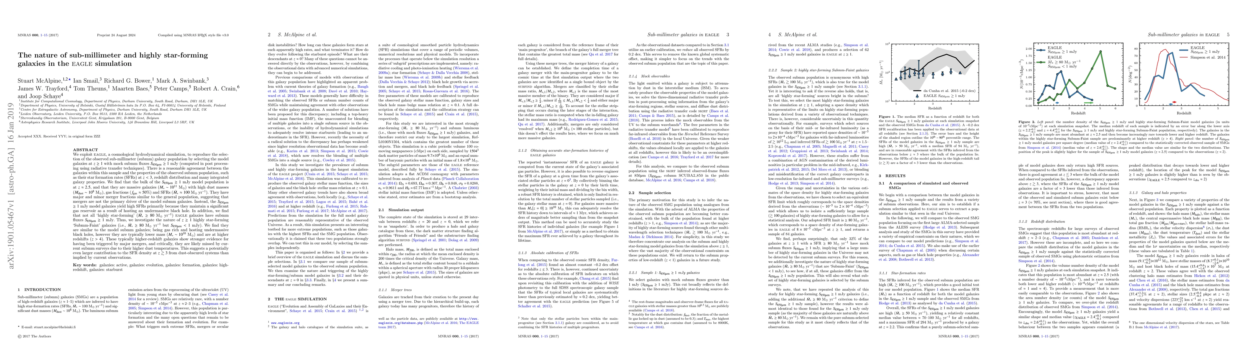 We exploit EAGLE, a cosmological hydrodynamical simulation, to reproduce the selection of the observed sub-millimeter (submm) galaxy population by selecting the model galaxies at $z \geq 1$ with mock submm fluxes $S_{850} \geq 1$ mJy. There is a reasonable agreement between the galaxies within this sample and the properties of the observed submm population, such as their star formation rates (SFRs) at $z<3$, redshift distribution and many integrated galaxy properties. We find that the bulk of the $S_{850} \geq 1$ mJy model population is at $z = 2.5$, and that they are massive galaxies ($M_* \sim 10^{11}$ Msol) with high dust masses ($M_{\mathrm{dust}} \sim 10^{8}$ Msol), gas fractions ($f_{\mathrm{gas}} \approx 50$%) and SFRs ($\dot M_* \approx 100$ Msol/yr). They have major and minor merger fractions similar to the general population, suggesting that mergers are not the primary driver of the model submm galaxies. Instead, the $S_{850} \geq 1$ mJy model galaxies yield high SFRs primarily because they maintain a significant gas reservoir as a result of hosting an undermassive black hole. In addition, we find that not all highly star-forming EAGLE galaxies have submm fluxes $S_{850} > 1$ mJy. Thus, we investigate the nature of $z \geq 1$ highly star-forming Submm-Faint galaxies (i.e., $\dot M_* \geq 80$ Msol/yr but $S_{850}< 1$ mJy). We find they are similar to the model submm galaxies; being gas rich and hosting undermassive black holes, however they are typically lower mass ($M_* \sim 10^{10}$ Msol) and are at higher redshifts ($z>4$). These typically higher-$z$ galaxies show stronger evidence for having been triggered by major mergers, and critically, they are likely missed by current submm surveys due to their higher dust temperatures. This suggests a potentially even larger contribution to the SFR density at $z > 3$ from dust-obscured systems than implied by current observations.