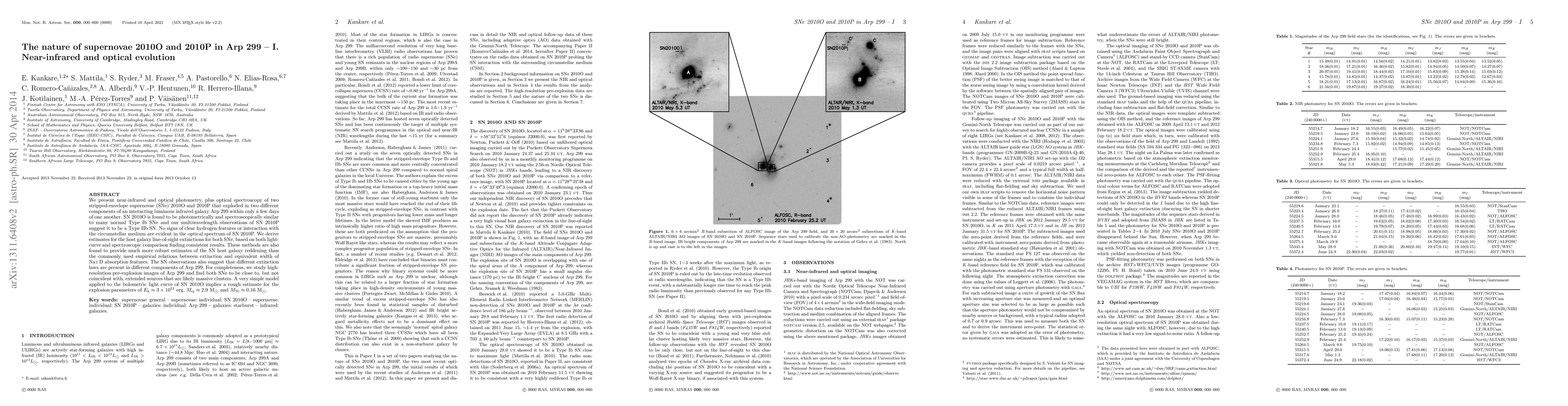 This paper investigates the near-infrared and optical evolution of two stripped-envelope supernovae, SNe 2010O and 2010P in Arp 299, finding SN 2010O to be Type Ib and SN 2010P to be Type IIb. It also provides robust estimates of host galaxy reddening and suggests different extinction laws in Arp 299's components.