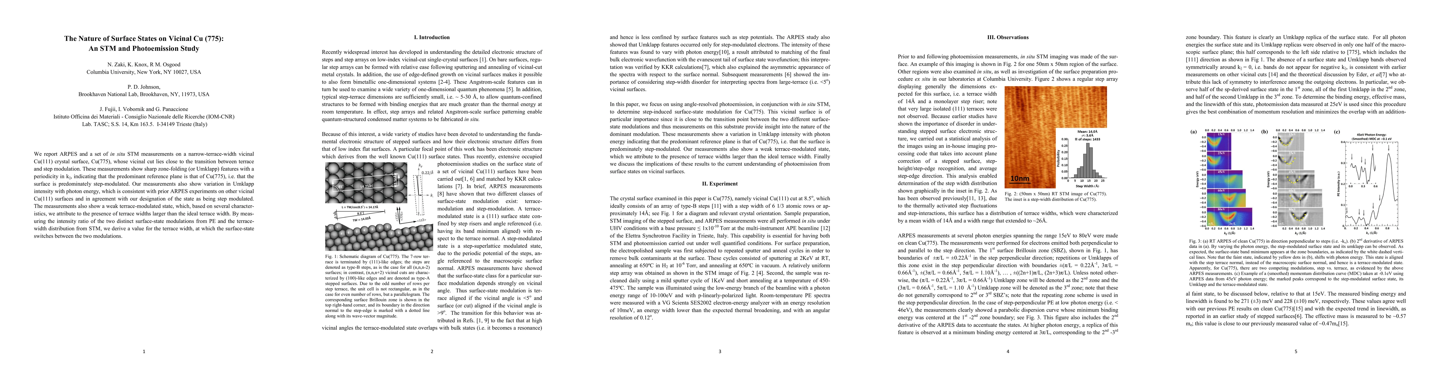 We report ARPES and a set of in situ STM measurements on a narrow-terrace-width vicinal Cu(111) crystal surface, Cu(775), whose vicinal cut lies close to the transition between terrace and step modulation. These measurements show sharp zone-folding (or Umklapp) features with a periodicity in k||, indicating that the predominant reference plane is that of Cu(775), i.e. that the surface is predominately step-modulated. Our measurements also show variation in Umklapp intensity with photon energy, which is consistent with prior ARPES experiments on other vicinal Cu(111) surfaces and in agreement with our designation of the state as being step modulated. The measurements also show a weak terrace-modulated state, which, based on several characteristics, we attribute to the presence of terrace widths larger than the ideal terrace width. By measuring the intensity ratio of the two distinct surface-state modulations from PE and the terrace-width distribution from STM, we derive a value for the terrace width, at which the surface-state switches between the two modulations.