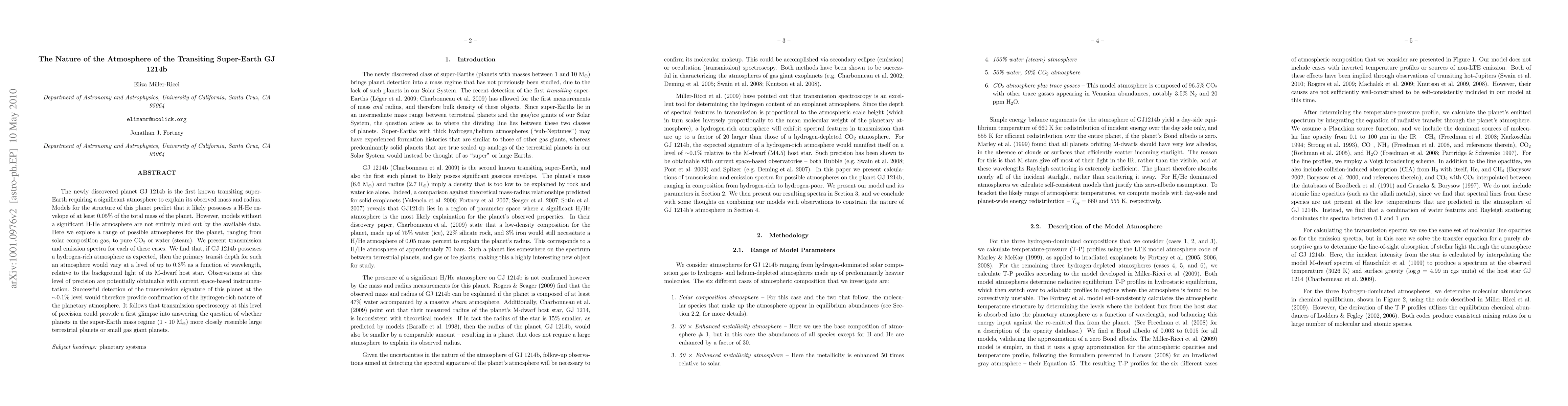 This paper investigates the atmospheric composition of the transiting super-Earth GJ 1214b, exploring models ranging from hydrogen-rich to CO_2 or water vapor atmospheres. It concludes that precise transmission spectroscopy could confirm a hydrogen-rich atmosphere, offering insights into the nature of super-Earth planets.