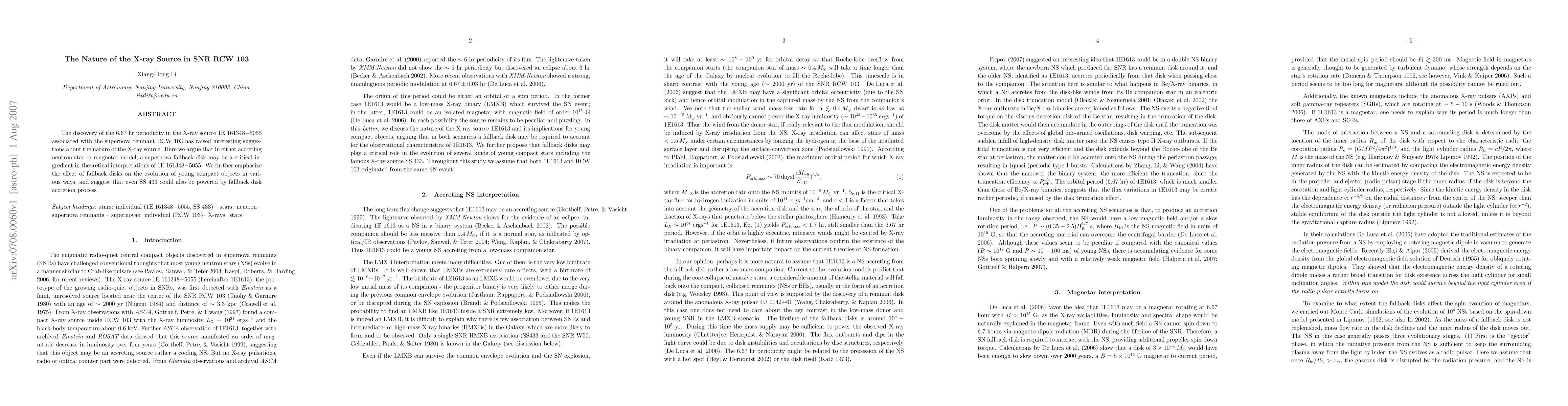This paper investigates the 6.67 hr periodic X-ray source in supernova remnant RCW 103, proposing that a supernova fallback disk is crucial for understanding the nature of the source, whether it be an accreting neutron star or a magnetar. It highlights the role of fallback disks in the evolution of young compact objects and suggests that similar processes may power other systems like SS 433.