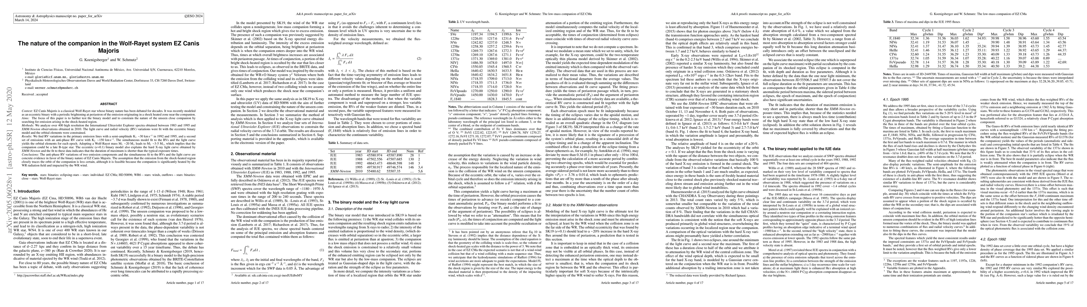This paper investigates the binary nature of the Wolf-Rayet star EZ Canis Majoris, finding evidence for an eccentric binary system with a late B-type star companion. Analysis of high-resolution spectra and XMM-Newton observations supports the model, revealing anti-phase radial velocity variations and a shorter duration of X-ray maximum light curve.