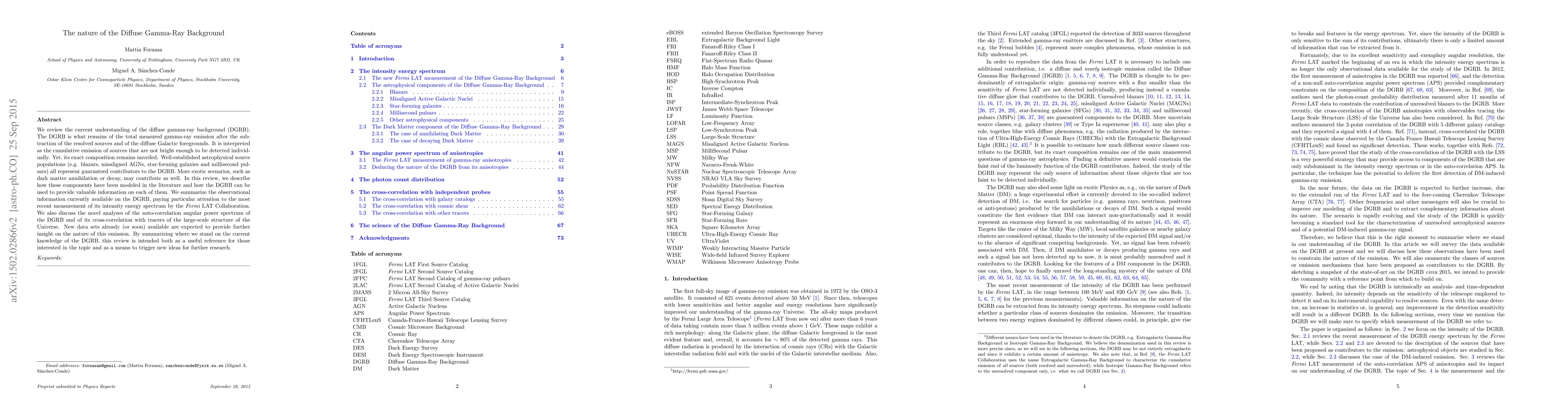 We review the current understanding of the diffuse gamma-ray background (DGRB). The DGRB is what remains of the total measured gamma-ray emission after the subtraction of the resolved sources and of the diffuse Galactic foregrounds. It is interpreted as the cumulative emission of sources that are not bright enough to be detected individually. Yet, its exact composition remains unveiled. Well-established astrophysical source populations (e.g. blazars, misaligned AGNs, star-forming galaxies and millisecond pulsars) all represent guaranteed contributors to the DGRB. More exotic scenarios, such as dark matter annihilation or decay, may contribute as well. In this review, we describe how these components have been modeled in the literature and how the DGRB can be used to provide valuable information on each of them. We summarize the observational information currently available on the DGRB, paying particular attention to the most recent measurement of its intensity energy spectrum by the Fermi LAT Collaboration. We also discuss the novel analyses of the auto-correlation angular power spectrum of the DGRB and of its cross-correlation with tracers of the large-scale structure of the Universe. New data sets already (or soon) available are expected to provide further insight on the nature of this emission. By summarizing where we stand on the current knowledge of the DGRB, this review is intended both as a useful reference for those interested in the topic and as a means to trigger new ideas for further research.