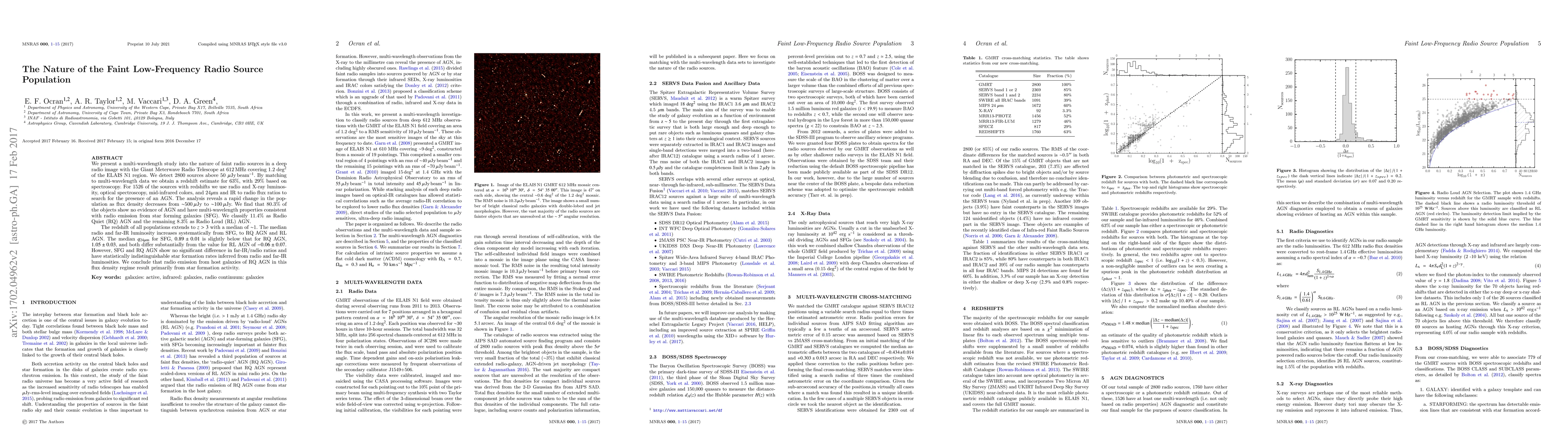 This study uses the Giant Meterwave Radio Telescope to investigate faint radio sources in the ELAIS N1 region, identifying 2800 sources. The analysis reveals that most (80.3%) are star-forming galaxies, while 11.4% are Radio Quiet AGN and 8.3% are Radio Loud AGN, with redshifts extending to $z > 3$. Star-forming galaxies and Radio Quiet AGN show similar star formation rates, suggesting star formation activity dominates in Radio Quiet AGN.