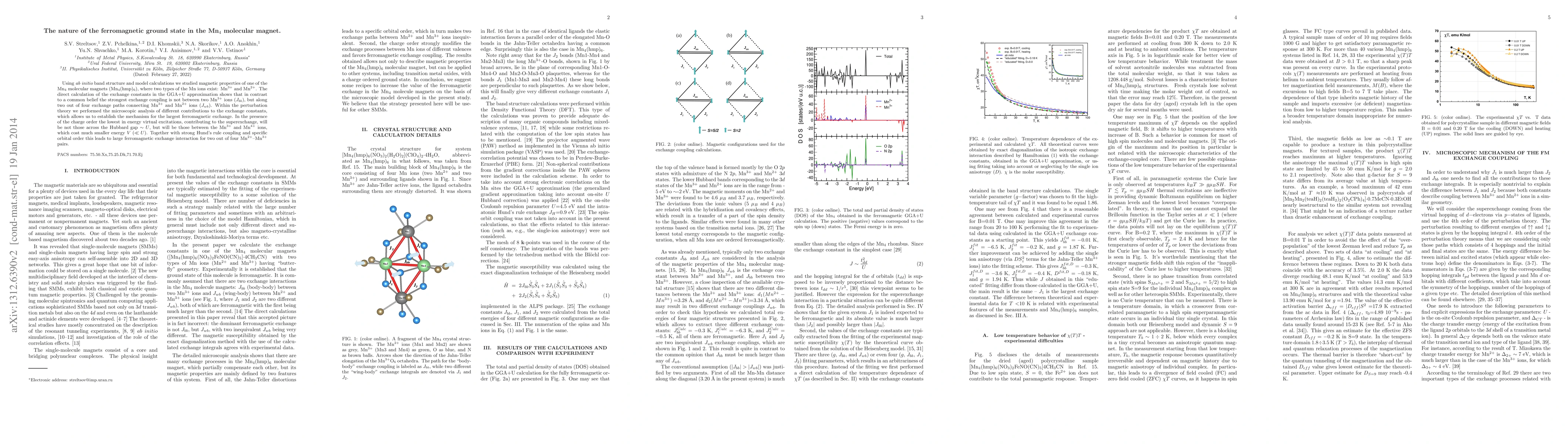 Using ab initio band structure and model calculations we studied magnetic properties of one of the Mn$_4$ molecular magnets (Mn4(hmp)6), where two types of the Mn ions exist: Mn3+ and Mn2+. The direct calculation of the exchange constants in the GGA+U approximation shows that in contrast to a common belief the strongest exchange coupling is not between two Mn3+ ions (J_{bb}), but along two out of four exchange paths connecting Mn3+ and Mn2+ ions (J_{wb}). The microscopic analysis performed within the perturbation theory allowed to establish the mechanism for this largest ferromagnetic exchange constant. The charge ordering of the Mn ions results in the situation when the energy of the excited state in the exchange process is defined not by the large on-site Coulomb repulsion U, but by much smaller energy V, which stabilizes the charge ordered state. Together with strong Hund's rule coupling and specific orbital order this leads to a large ferromagnetic exchange interaction for two out of four Mn2+ --Mn3+ pairs.