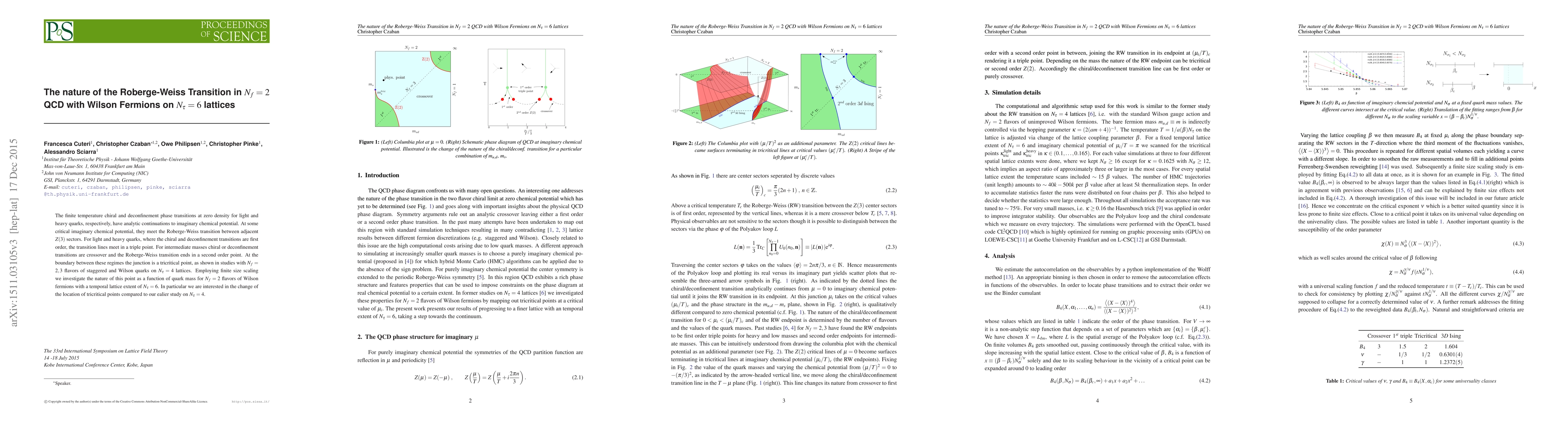 The finite temperature chiral and deconfinement phase transitions at zero density for light and heavy quarks, respectively, have analytic continuations to imaginary chemical potential. At some critical imaginary chemical potential, they meet the Roberge-Weiss transition between adjacent $Z(3)$ sectors. For light and heavy quarks, where the chiral and deconfinement transitions are first order, the transition lines meet in a triple point. For intermediate masses chiral or deconfinement transitions are crossover and the Roberge-Weiss transition ends in a second order point. At the boundary between these regimes the junction is a tricritical point, as shown in studies with $N_f=2,3$ flavors of staggered and Wilson quarks on $N_\tau=4$ lattices. Employing finite size scaling we investigate the nature of this point as a function of quark mass for $N_f=2$ flavors of Wilson fermions with a temporal lattice extent of $N_\tau=6$. In particular we are interested in the change of the location of tricritical points compared to our ealier study on $N_\tau=4$.