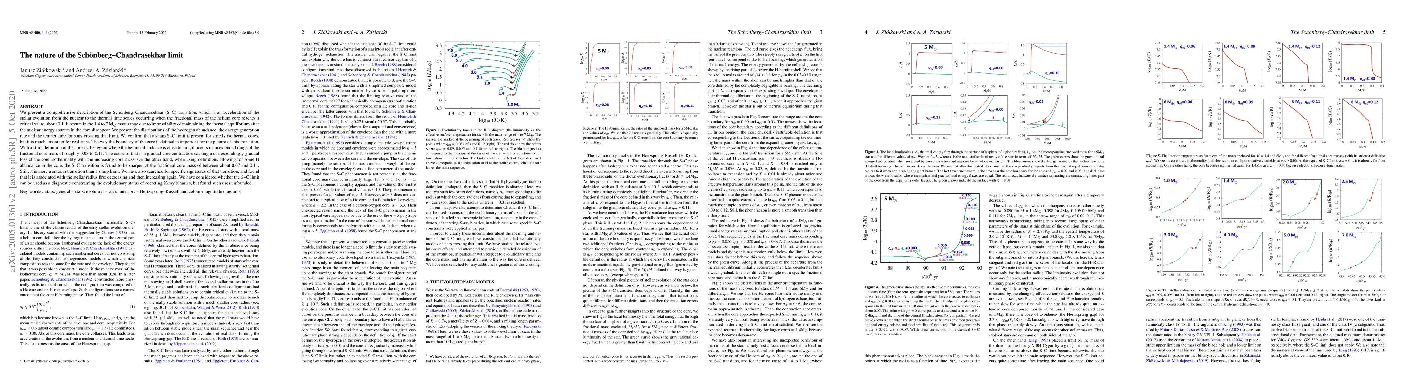 We present a comprehensive description of the Sch\"onberg--Chandrasekhar (S--C) transition, which is an acceleration of the stellar evolution from the nuclear to the thermal time scales occurring when the fractional mass of the helium core reaches a critical value, about 0.1. It occurs in the 1.4 to 7 M$_\odot$ mass range due to impossibility of maintaining the thermal equilibrium after the nuclear energy sources in the core disappear. We present the distributions of the hydrogen abundance, the energy generation rate and the temperature for stars crossing that limit. We confirm that a sharp S--C limit is present for strictly isothermal cores, but it is much smoother for real stars. The way the boundary of the core is defined is important for the picture of this transition. With a strict definition of the core as the region where the helium abundance is close to null, it occurs in an extended range of the fractional core mass of roughly 0.03 to 0.11. The cause of that is a gradual core contraction causing a correspondingly gradual loss of the core isothermality with the increasing core mass. On the other hand, when using definitions allowing for some H abundance in the core, the S--C transition is found to be sharper, at the fractional core mass of between about 0.07 and 0.11. Still, it is more a smooth transition than a sharp limit. We have also searched for specific signatures of that transition, and found that it is associated with the stellar radius first decreasing and then increasing again. We have considered whether the S--C limit can be used as a diagnostic constraining the evolutionary status of accreting X-ray binaries, but found such uses unfounded.