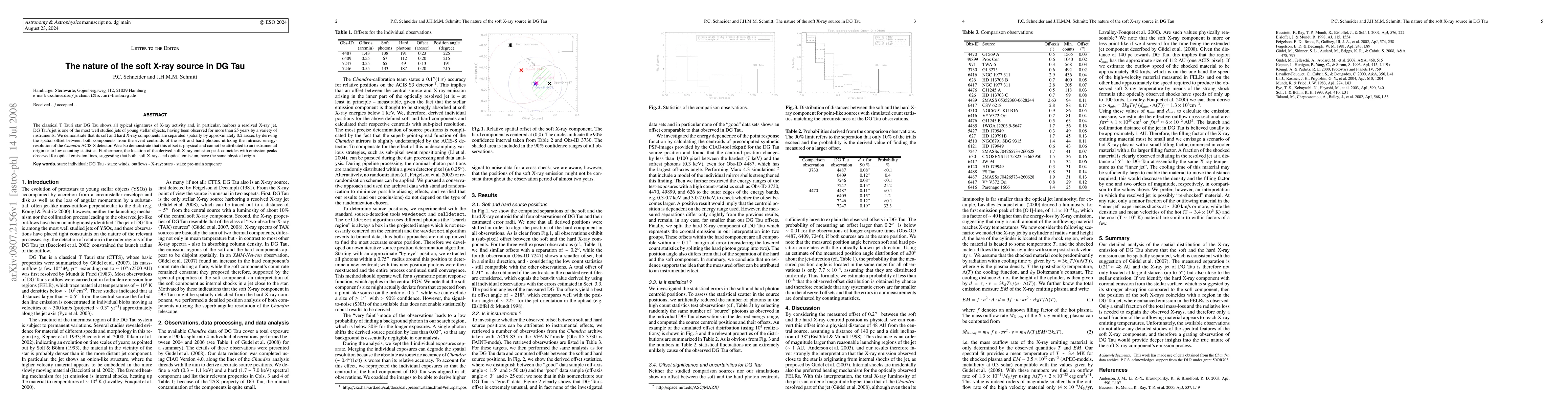 Researchers found a resolved X-ray jet in the star DG Tau, with soft X-rays separated from hard X-rays by 0.2 arcseconds, indicating they have the same physical origin as observed optical emission lines.
