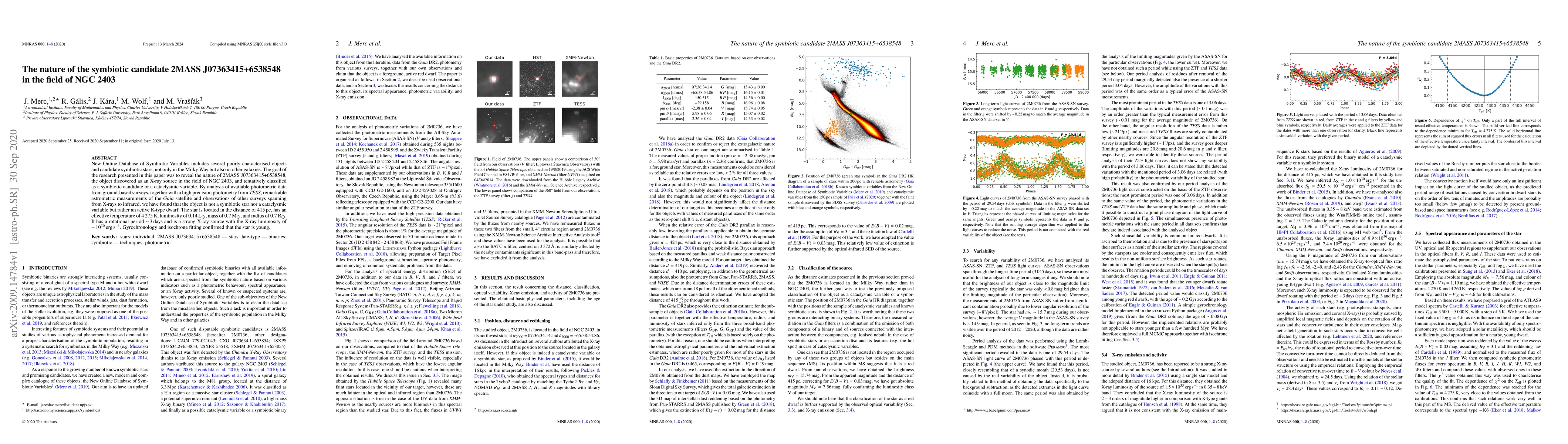 New Online Database of Symbiotic Variables includes several poorly characterised objects and candidate symbiotic stars, not only in the Milky Way but also in other galaxies. The goal of the research presented in this paper was to reveal the nature of 2MASS J07363415+6538548, the object discovered as an X-ray source in the field of NGC 2403, and tentatively classified as a symbiotic candidate or a cataclysmic variable. By analysis of available photometric data from ground-based surveys, together with high precision photometry from TESS, remarkable astrometric measurements of the Gaia satellite, and observations of other surveys spanning from X-rays to infrared, we have found that the object is not a symbiotic star nor a cataclysmic variable but rather an active K-type dwarf. The star is located in the distance of 415 pc, has an effective temperature of 4 275 K, luminosity of 0.14 L$\odot$, a mass of 0.7 M$\odot$, and radius of 0.7 R$\odot$. It has a rotational period ~ 3 days and is a strong X-ray source with the X-ray luminosity of ~ $10^{30}$ erg/s. Gyrochronology and isochrone fitting confirmed that the star is young.