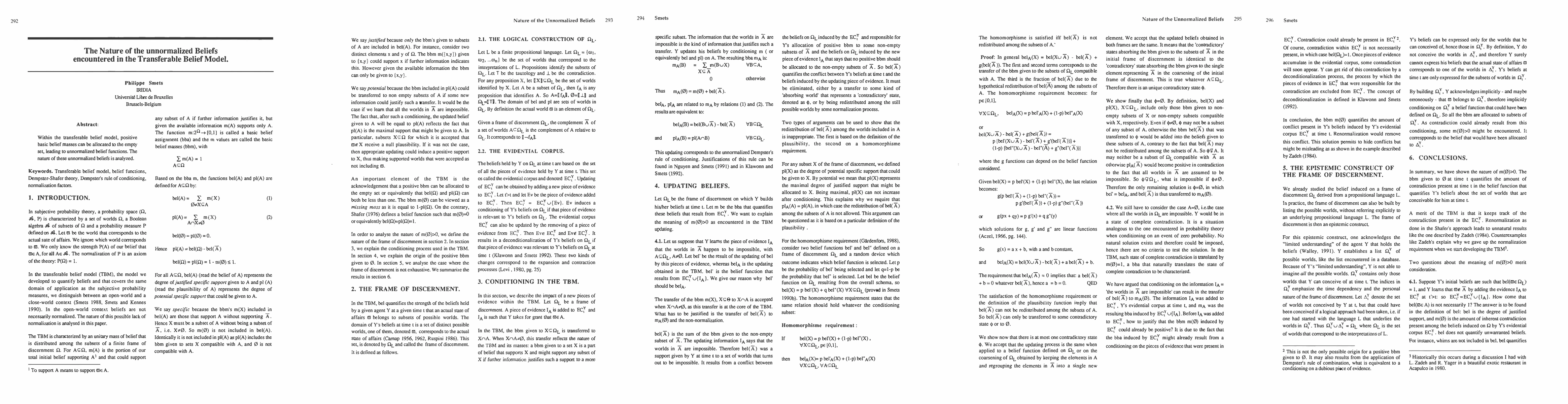 Summary: This paper investigates the occurrence of unnormalized beliefs in the transferable belief model, where positive basic belief masses can be assigned to the empty set, and analyzes the implications and characteristics of these unnormalized belief functions.