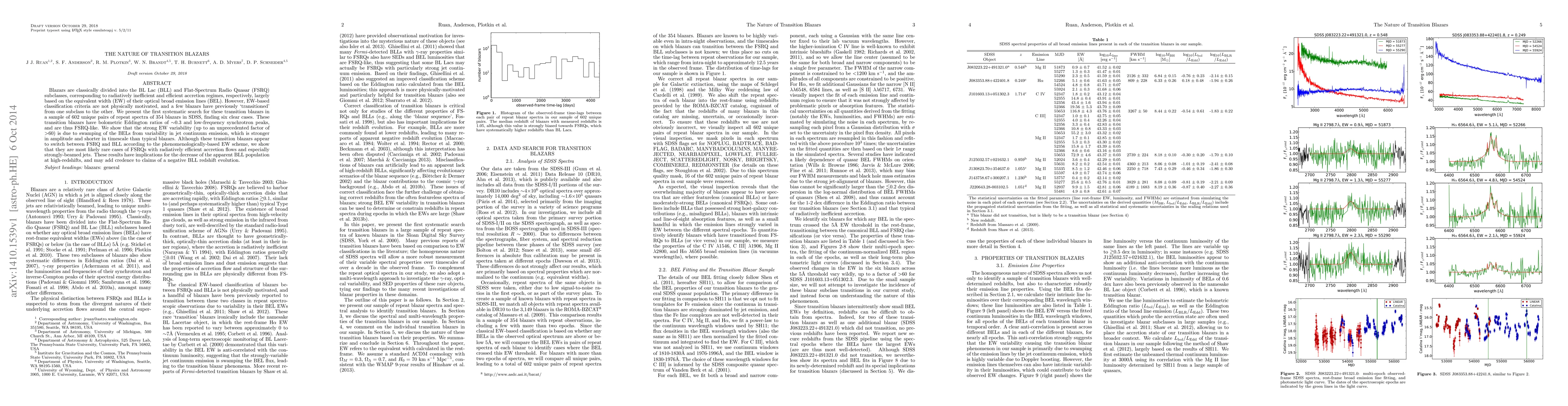 Blazars are classically divided into the BL Lac (BLL) and Flat-Spectrum Radio Quasar (FSRQ) subclasses, corresponding to radiatively inefficient and efficient accretion regimes, respectively, largely based on the equivalent width (EW) of their optical broad emission lines (BEL). However, EW-based classification criteria are not physically motivated, and a few blazars have previously 'transitioned' from one subclass to the other. We present the first systematic search for these transition blazars in a sample of 602 unique pairs of repeat spectra of 354 blazars in SDSS, finding six clear cases. These transition blazars have bolometric Eddington ratios of ~0.3 and low-frequency synchrotron peaks, and are thus FSRQ-like. We show that the strong EW variability (up to an unprecedented factor of >60) is due to swamping of the BELs from variability in jet continuum emission, which is stronger in amplitude and shorter in timescale than typical blazars. Although these transition blazars appear to switch between FSRQ and BLL according to the phenomenologically-based EW scheme, we show that they are most likely rare cases of FSRQs with radiatively efficient accretion flows and especially strongly-beamed jets. These results have implications for the decrease of the apparent BLL population at high-redshifts, and may add credence to claims of a negative BLL redshift evolution.