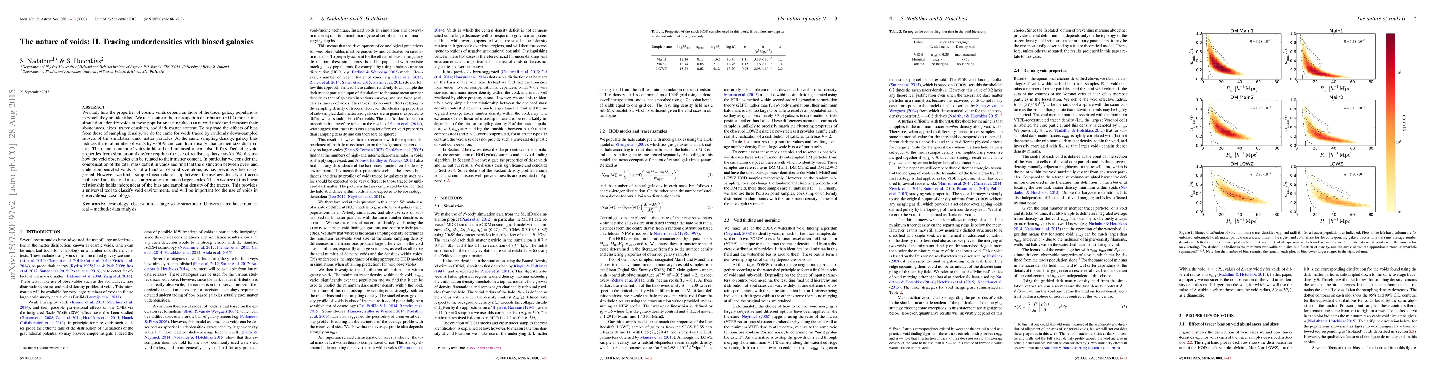 We study how the properties of cosmic voids depend on those of the tracer galaxy populations in which they are identified. We use a suite of halo occupation distribution (HOD) mocks in a simulation, identify voids in these populations using the ZOBOV void finder and measure their abundances, sizes, tracer densities, and dark matter content. To separate the effects of bias from those of sampling density, we do the same for voids traced by randomly down-sampled subsets of the simulation dark matter particles. At the same sampling density, galaxy bias reduces the total number of voids by ~50% and can dramatically change their size distribution. The matter content of voids in biased and unbiased tracers also differs. Deducing void properties from simulation therefore requires the use of realistic galaxy mocks. We discuss how the void observables can be related to their matter content. In particular we consider the compensation of the total mass deficit in voids and find that the distinction between over- and under-compensated voids is not a function of void size alone, as has previously been suggested. However, we find a simple linear relationship between the average density of tracers in the void and the total mass compensation on much larger scales. The existence of this linear relationship holds independent of the bias and sampling density of the tracers. This provides a universal tool to classify void environments and will be important for the use of voids in observational cosmology.