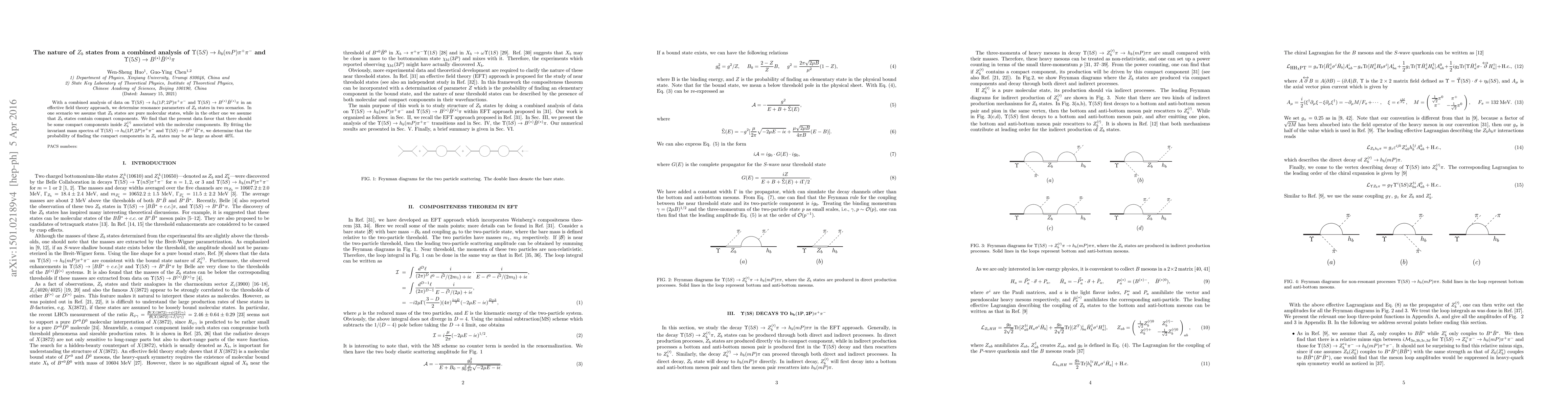 With a combined analysis of data on $\Upsilon(5S)\rightarrow h_b(1P,2P)\pi^+\pi^-$ and $\Upsilon(5S)\rightarrow B^{(\ast)}\bar B^{(\ast)}\pi$ in an effective field theory approach, we determine resonance parameters of $Z_b$ states in two scenarios. In one scenario we assume that $Z_b$ states are pure molecular states, while in the other one we assume that $Z_b$ states contain compact components. We find that the present data favor that there should be some compact components inside $Z_b^{(\prime)}$ associated with the molecular components. By fitting the invariant mass spectra of $\Upsilon(5S)\rightarrow h_b(1P,2P)\pi^+\pi^-$ and $\Upsilon(5S)\rightarrow B^{(\ast)}\bar B^{\ast}\pi$, we determine that the probability of finding the compact components in $Z_b$ states may be as large as about $40\%$.