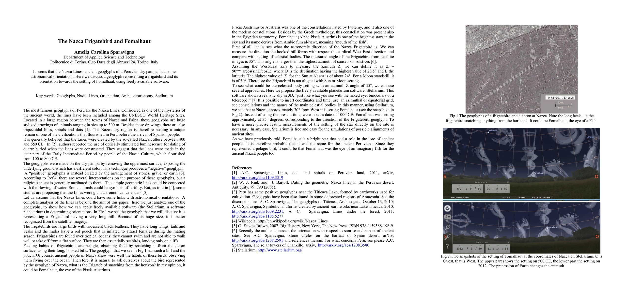 It seems that the Nazca Lines, ancient geoglyphs of a Peruvian dry pampa, had some astronomical orientations. Here we discuss a geoglyph representing a frigatebird and its orientation towards the setting of Fomalhaut, using freely available software.