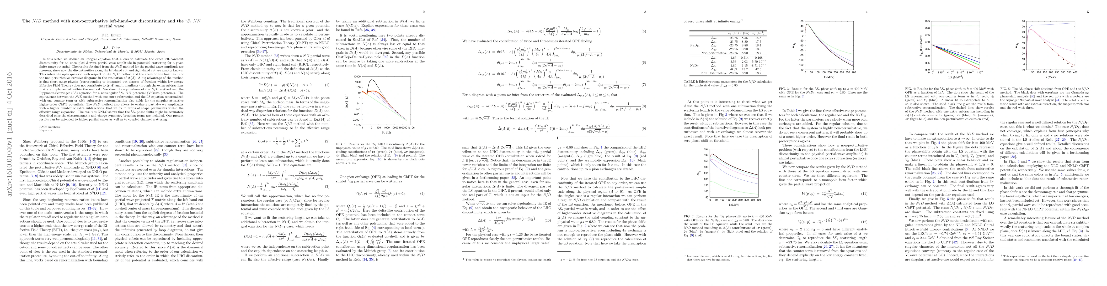 In this letter we deduce an integral equation that allows to calculate the exact left-hand-cut discontinuity for an uncoupled $S$-wave partial-wave amplitude in potential scattering for a given finite-range potential. The results obtained from the $N/D$ method for the partial-wave amplitude are rigorous, since now the discontinuities along the left-hand cut and right-hand cut are exactly known. This solves the open question with respect to the $N/D$ method and the effect on the final result of the non-perturbative iterative diagrams in the evaluation of $\Delta(A)$. A big advantage of the method is that short-range physics (corresponding to integrated out degrees of freedom within low-energy Effective Field Theory) does not contribute to $\Delta(A)$ and it manifests through the extra subtractions that are implemented within the method. We show the equivalence of the $N/D$ method and the Lippmann-Schwinger (LS) equation for a nonsingular $^1S_0$ $NN$ potential (Yukawa potential). The equivalence between the $N/D$ method with one extra subtraction and the LS equation renormalized with one counter term or with subtractive renormalization also holds for the singular attractive higher-order ChPT potentials. The $N/D$ method also allows to evaluate partial-wave amplitudes with a higher number of extra subtractions, that we fix in terms of shape parameters within the effective range expansion. The result at NNLO shows that the $^1S_0$ phase shifts might be accurately described once the electromagnetic and charge symmetry breaking terms are included. Our present results can be extended to higher partial waves as well as to coupled channel scattering.