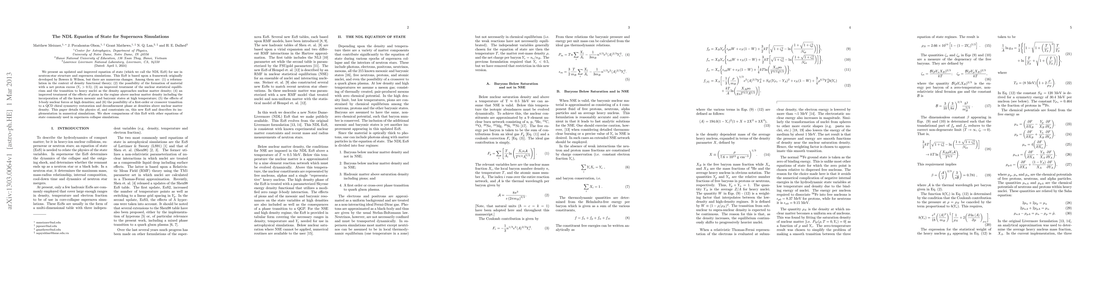 The research presents an updated and improved equation of state (NDL EoS) for neutron-star structure and supernova simulations, based on a framework by Bowers & Wilson with numerous enhancements, including reformulation in density functional theory, consideration of material with net proton excess, improved nuclear statistical equilibrium treatment, incorporation of pion effects, 3-body nuclear forces, and potential QCD chiral symmetry restoration and deconfinement phase.