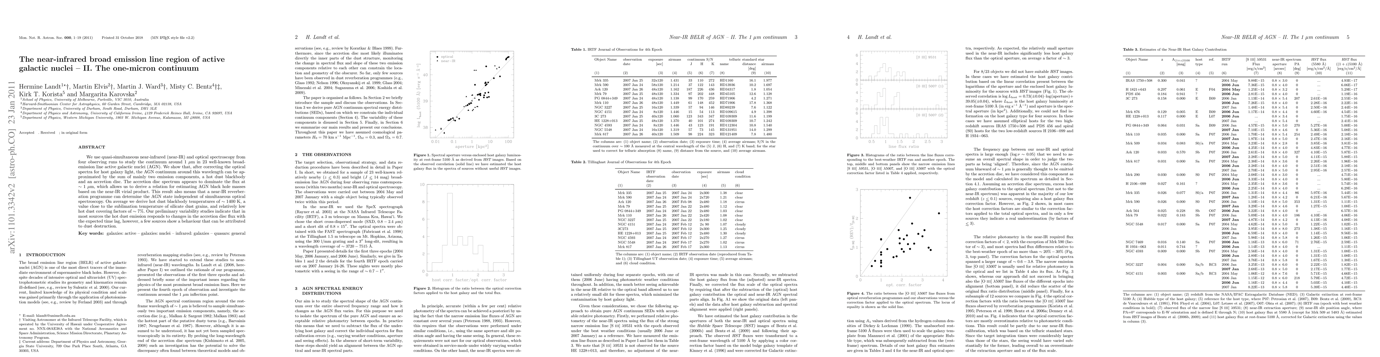 We use quasi-simultaneous near-infrared (near-IR) and optical spectroscopy from four observing runs to study the continuum around 1 micron in 23 well-known broad-emission line active galactic nuclei (AGN). We show that, after correcting the optical spectra for host galaxy light, the AGN continuum around this wavelength can be approximated by the sum of mainly two emission components, a hot dust blackbody and an accretion disc. The accretion disc spectrum appears to dominate the flux at ~1 micron, which allows us to derive a relation for estimating AGN black hole masses based on the near-IR virial product. This result also means that a near-IR reverberation programme can determine the AGN state independent of simultaneous optical spectroscopy. On average we derive hot dust blackbody temperatures of ~1400 K, a value close to the sublimation temperature of silicate dust grains, and relatively low hot dust covering factors of ~7%. Our preliminary variability studies indicate that in most sources the hot dust emission responds to changes in the accretion disc flux with the expected time lag, however, a few sources show a behaviour that can be attributed to dust destruction.