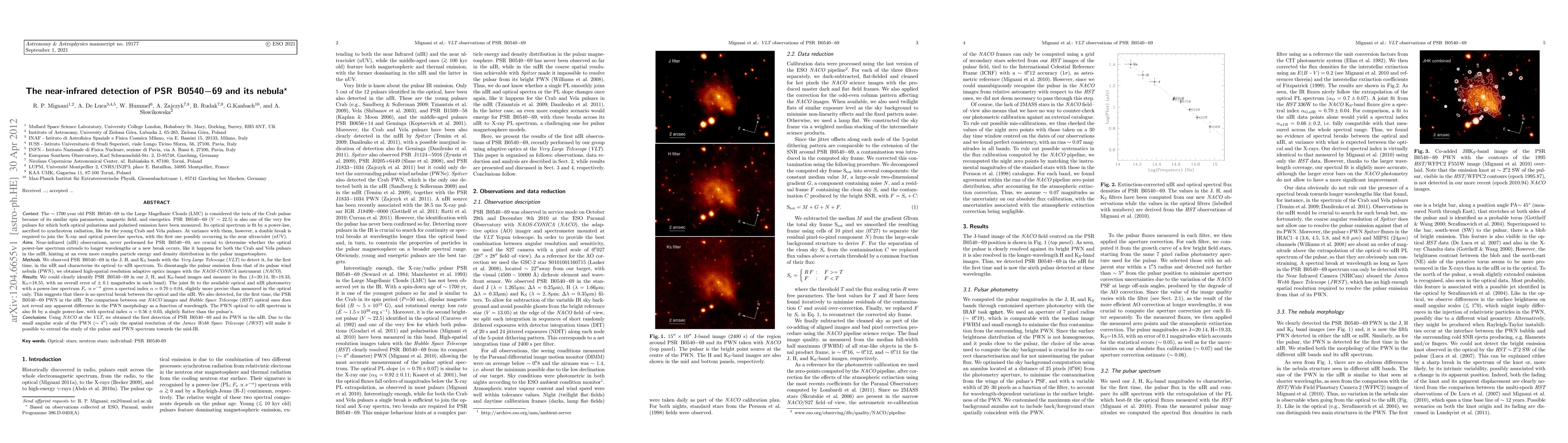 This paper reports the first near-infrared detection of PSR B0540-69 and its pulsar wind nebula (PWN) using the VLT, revealing a power-law spectrum for both. The study suggests that the optical-to-nIR spectrum of the PWN is slightly flatter than that of the pulsar, indicating potential differences in their energy distributions.