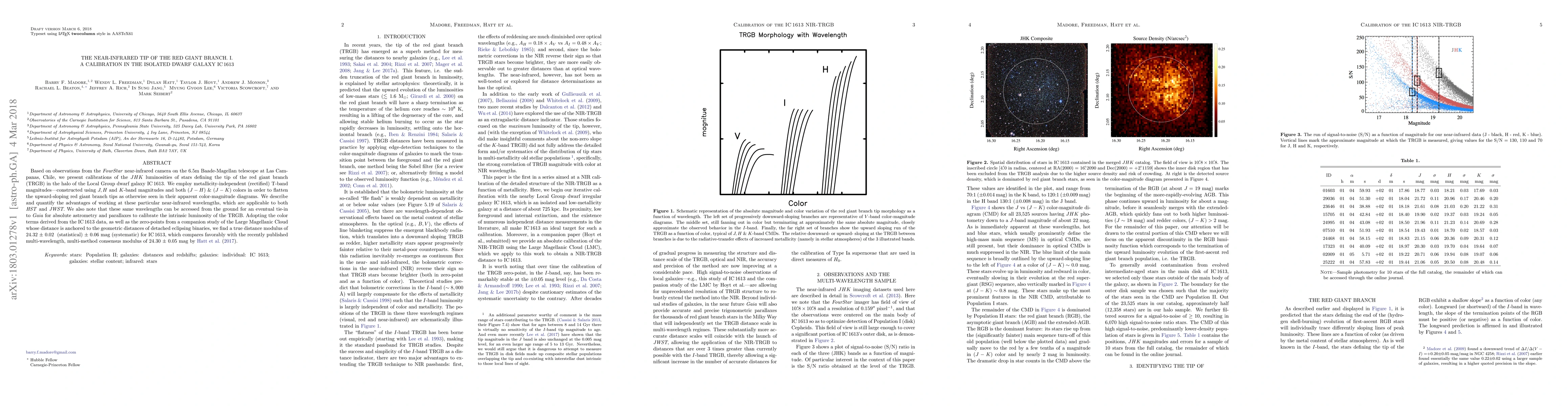 This paper calibrates the near-infrared luminosities of the tip of the red giant branch (TRGB) in the dwarf galaxy IC 1613 using the FourStar camera. It finds a true distance modulus of 24.32 ± 0.02 mag, aligning well with recent consensus estimates, and highlights the advantages of near-infrared wavelengths for future space and ground-based observations.