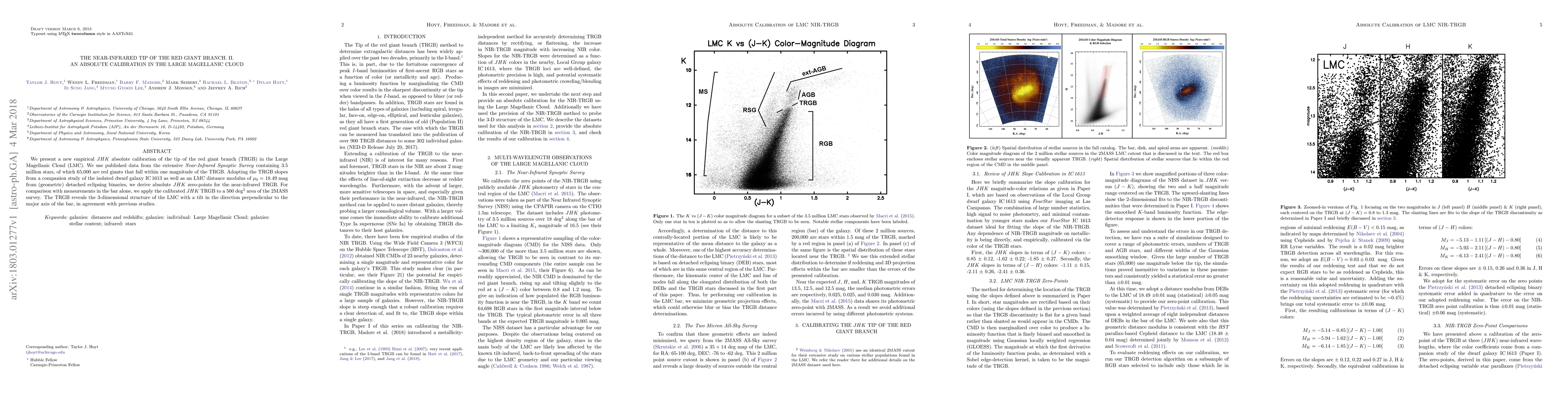 This paper presents a new empirical \(JHK\) absolute calibration of the tip of the red giant branch (TRGB) in the Large Magellanic Cloud, using data from the Near-Infrared Synoptic Survey. The study derives absolute \(JHK\) zero-points for the near-infrared TRGB and applies it to a 2MASS survey area, revealing the 3-dimensional structure of the LMC.
