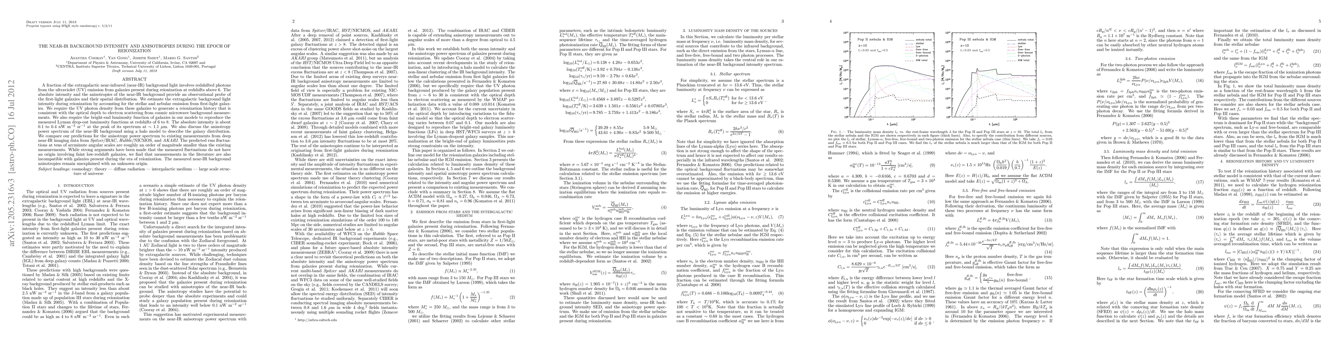 This paper estimates the intensity and anisotropies of the extragalactic near-IR background light during the epoch of reionization, attributing it to redshifted UV emissions from first-light galaxies. The predicted intensity peaks at around 0.1 to 0.3 nW m$^{-2}$ sr$^{-1}$ at 1.1 μm, while the anisotropy power spectrum is inconsistent with current measurements, suggesting the observed fluctuations may have an unidentified non-astrophysical origin.