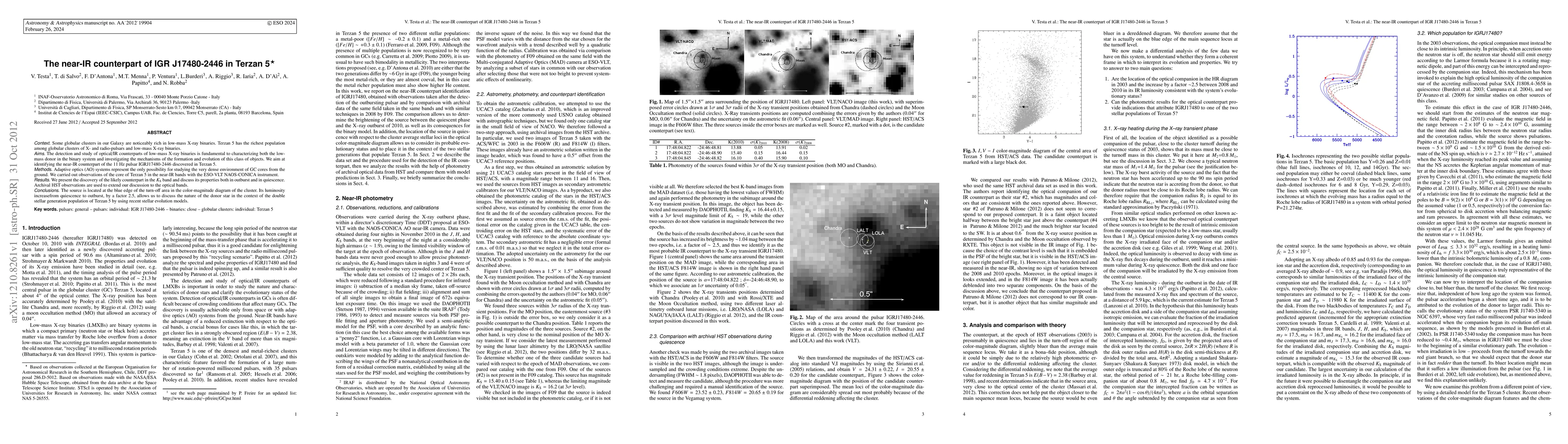 Some globular clusters in our Galaxy are noticeably rich in low-mass X-ray binaries. Terzan 5 has the richest population among globular clusters of X- and radio-pulsars and low-mass X-ray binaries. The detection and study of optical/IR counterparts of low-mass X-ray binaries is fundamental to characterizing both the low-mass donor in the binary system and investigating the mechanisms of the formation and evolution of this class of objects. We aim at identifying the near-IR counterpart of the 11 Hz pulsar IGRJ17480-2446 discovered in Terzan 5. Adaptive optics (AO) systems represent the only possibility for studying the very dense environment of GC cores from the ground. We carried out observations of the core of Terzan 5 in the near-IR bands with the ESO-VLT NAOS-CONICA instrument. We present the discovery of the likely counterpart in the Ks band and discuss its properties both in outburst and in quiescence. Archival HST observations are used to extend our discussion to the optical bands. The source is located at the blue edge of the turn-off area in the color-magnitude diagram of the cluster. Its luminosity increase from quiescence to outburst, by a factor 2.5, allows us to discuss the nature of the donor star in the context of the double stellar generation population of Terzan 5 by using recent stellar evolution models.