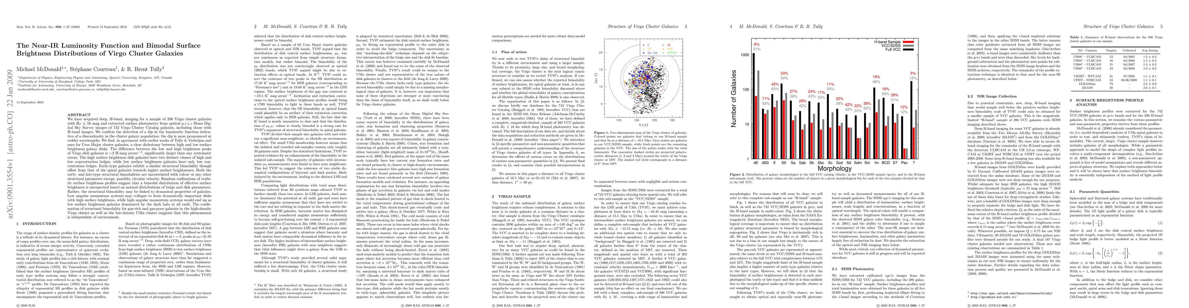This paper investigates the near-IR luminosity function and surface brightness distribution of Virgo cluster galaxies, revealing a significant bimodality in surface brightness. The study confirms a discontinuity in the cluster galaxy population and finds that galaxies exhibit distinct structural bimodality, independent of environmental factors.