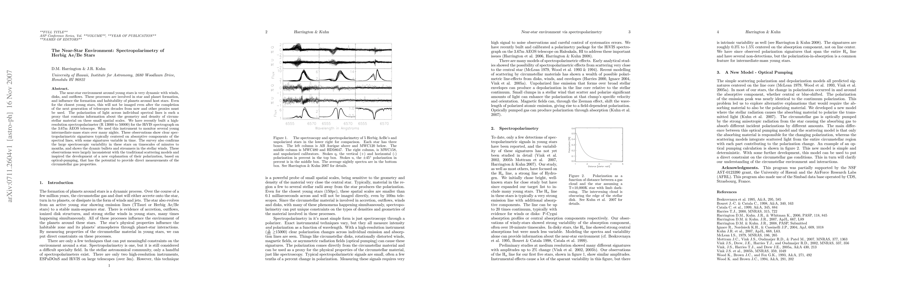 The near-star environment around young stars is very dynamic with winds, disks, and outflows. These processes are involved in star and planet formation, and influence the formation and habitability of planets around host stars. Even for the closest young stars, this will not be imaged even after the completion of the next generation of telescopes decades from now and other proxies must be used. The polarization of light across individual spectral lines is such a proxy that contains information about the geometry and density of circumstellar material on these small spatial scales. We have recently built a high-resolution spectropolarimeter (R~13000 to 50000) for the HiVIS spectrograph on the 3.67m AEOS telescope. We used this instrument to monitor several young intermediate-mass stars over many nights. These observations show clear spectropolarimetric signatures typically centered on absorptive components of the spectral lines, with some signatures variable in time. The survey also confirms the large spectroscopic variability in these stars on timescales of minutes to months, and shows the dyamic bullets and streamers in the stellar winds. These observations were largely inconsistent with the traditional scattering models and inspired the development of a new explanation of their polarization, based on optical-pumping, that has the potential to provide direct measurements of the circumstellar gas properties.