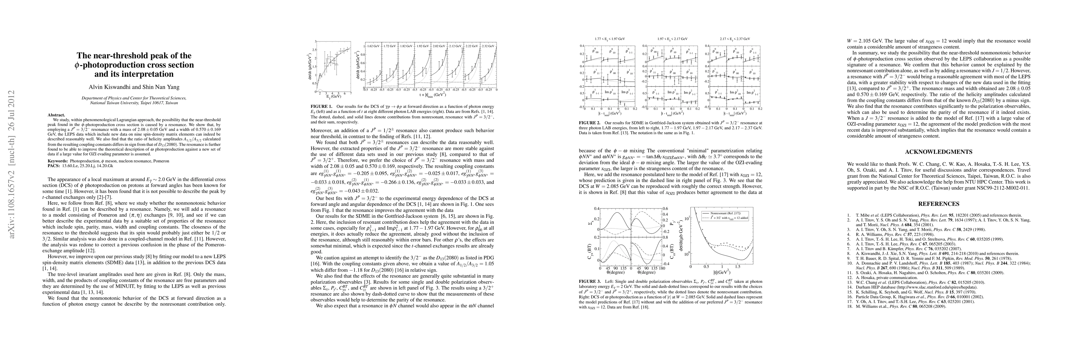 We study, within phenomenological Lagrangian approach, the possibility that the near-threshold peak found in the phi-photoproduction cross section is caused by a resonance. We show that, by employing a J^P=3/2^- resonance with a mass of 2.08 +/- 0.05 GeV and a width of 0.570 +/- 0.169 GeV, the LEPS data which include new data on nine spin-density matrix elements can indeed be described reasonably well. We also find that the ratio of helicity amplitudes A_1/2/A_3/2 calculated from the resulting coupling constants differs in sign from that of D13(2080). The resonance is further found to be able to improve the theoretical description of omega photoproduction against a new set of data if a large value for OZI evading parameter is assumed.
