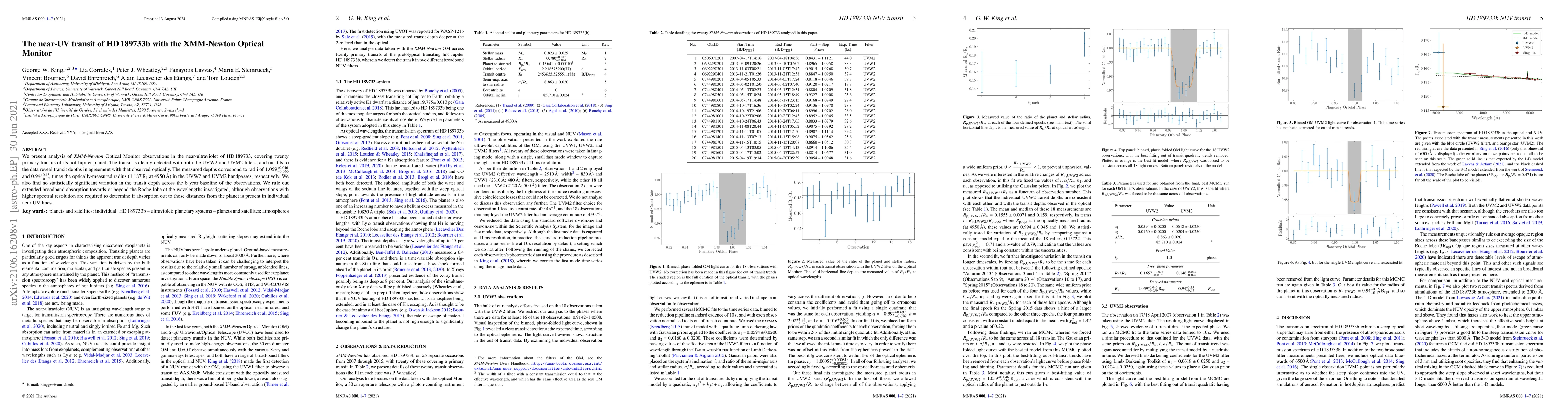 We present analysis of XMM-Newton Optical Monitor observations in the near-ultraviolet of HD 189733, covering twenty primary transits of its hot Jupiter planet. The transit is clearly detected with both the UVW2 and UVM2 filters, and our fits to the data reveal transit depths in agreement with that observed optically. The measured depths correspond to radii of $1.059^{+0.046}_{-0.050}$ and $0.94^{+0.15}_{-0.17}$ times the optically-measured radius (1.187 R$_{\rm J}$ at 4950 \r{A}) in the UVW2 and UVM2 bandpasses, respectively. We also find no statistically significant variation in the transit depth across the 8 year baseline of the observations. We rule out extended broadband absorption towards or beyond the Roche lobe at the wavelengths investigated, although observations with higher spectral resolution are required to determine if absorption out to those distances from the planet is present in individual near-UV lines.