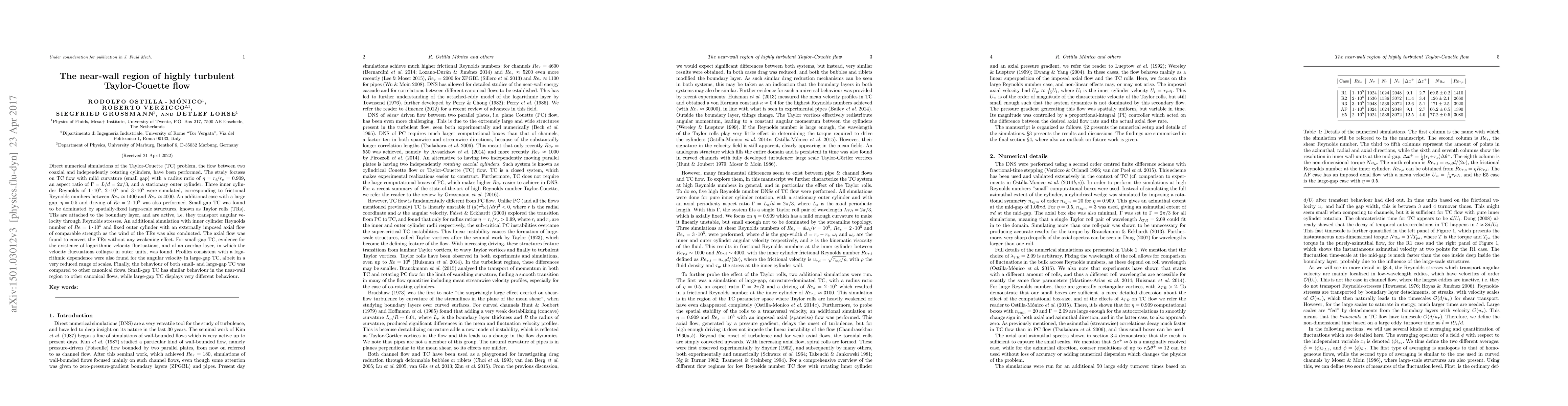 Direct numerical simulations of the Taylor-Couette (TC) problem, the flow between two coaxial and independently rotating cylinders, have been performed. The study focuses on TC flow with mild curvature (small gap) with a radius ratio of $\eta=r_i/r_o=0.909$, an aspect ratio of $\Gamma=L/d=2\pi/3$, and a stationary outer cylinder. Three inner cylinder Reynolds of $1\cdot10^5$, $2\cdot10^5$ and $3\cdot 10^5$ were simulated, corresponding to frictional Reynolds numbers between $Re_\tau\approx 1400$ and $Re_\tau \approx 4000$. An additional case with a large gap, $\eta=0.5$ and driving of $Re=2\cdot10^5$ was also performed. Small-gap TC was found to be dominated by spatially-fixed large-scale structures, known as Taylor rolls (TRs). TRs are attached to the boundary layer, and are active, i.e. they transport angular velocity through Reynolds stresses. An additional simulation with inner cylinder Reynolds number of $Re=1\cdot10^5$ and fixed outer cylinder with an externally imposed axial flow of comparable strength as the wind of the TRs was also conducted. The axial flow was found to convect the TRs without any weakening effect. For small-gap TC, evidence for the existence of logarithmic velocity fluctuations, and of an overlap layer, in which the velocity fluctuations collapse in outer units, was found. Profiles consistent with a logarithmic dependence were also found for the angular velocity in large-gap TC, albeit in a very reduced range of scales. Finally, the behaviour of both small- and large-gap TC was compared to other canonical flows. Small-gap TC has similar behaviour in the near-wall region to other canonical flows, while large-gap TC displays very different behaviour.