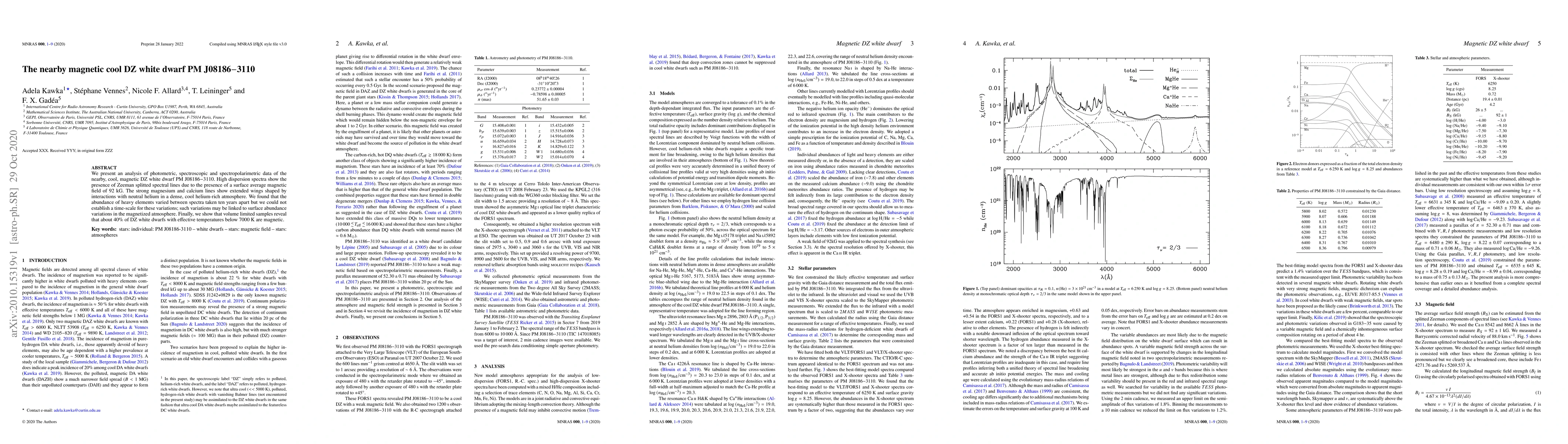 This paper analyzes PM J08186-3110, a magnetic DZ white dwarf, revealing a surface magnetic field of 92 kG and variations in heavy element abundance over a decade. About 40% of similar DZ white dwarfs with low temperatures are magnetic.