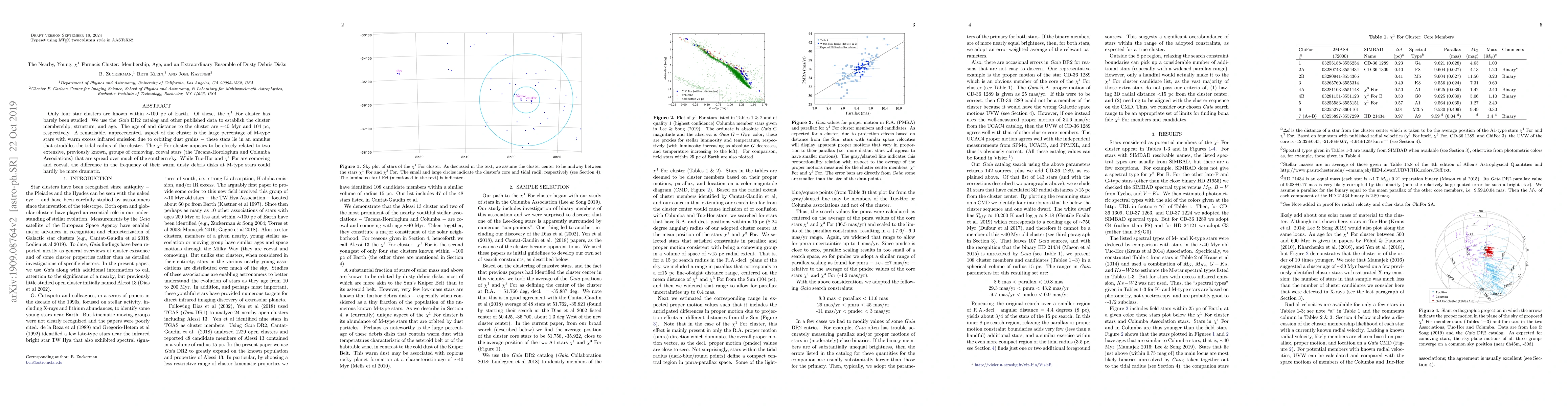 Only four star clusters are known within ~100 pc of Earth. Of these, the Chi1 For cluster has barely been studied. We use the Gaia DR2 catalog and other published data to establish the cluster membership, structure, and age. The age of and distance to the cluster are ~40 Myr and 104 pc, respectively. A remarkable, unprecedented, aspect of the cluster is the large percentage of M-type stars with warm excess infrared emission due to orbiting dust grains -- these stars lie in an annulus that straddles the tidal radius of the cluster. The Chi1 For cluster appears to be closely related to two extensive, previously known, groups of co-moving, coeval stars (the Tucana-Horologium and Columba Associations) that are spread over much of the southern sky. While Tuc-Hor and Chi1 For are comoving and coeval, the difference in the frequency of their warm dusty debris disks at M-type stars could hardly be more dramatic.