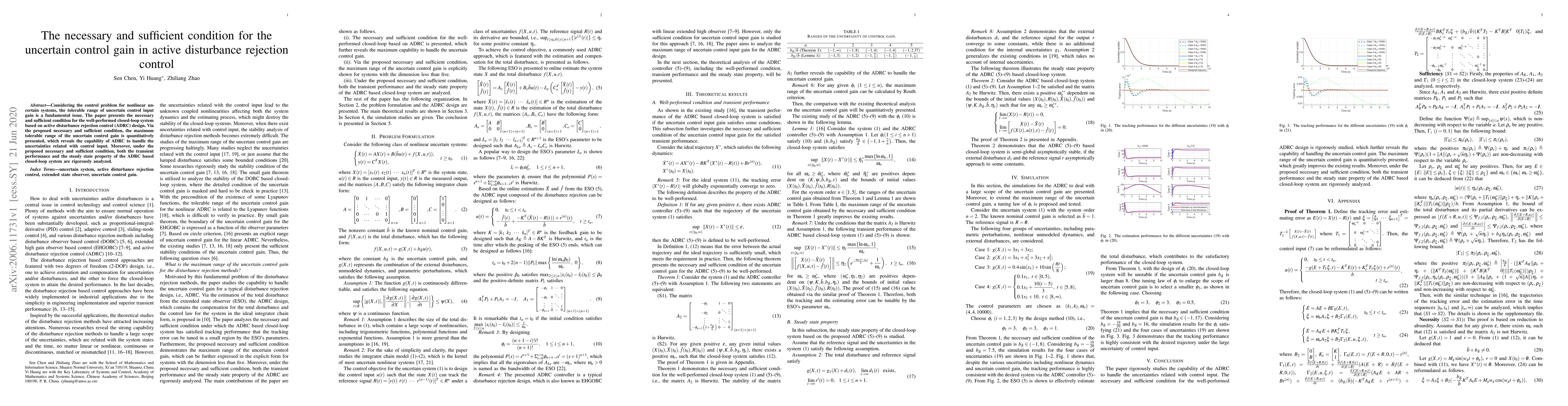 This paper establishes the necessary and sufficient condition for the uncertain control gain in active disturbance rejection control (ADRC), quantitatively determining the maximum tolerable range of control gain uncertainties. It rigorously analyzes both transient and steady-state performance of the ADRC-based closed-loop system under this condition.
