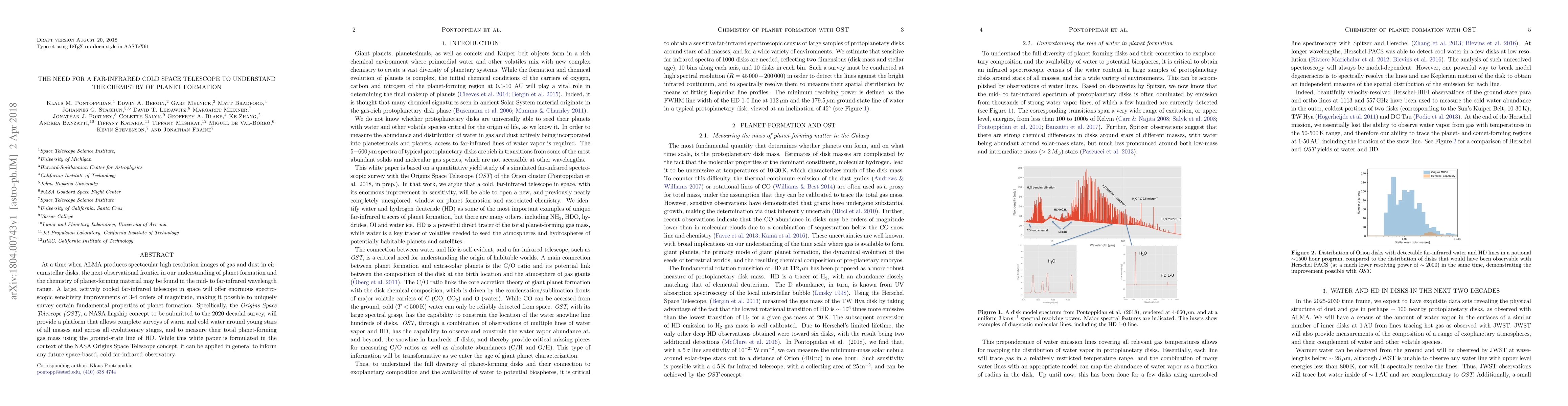 At a time when ALMA produces spectacular high resolution images of gas and dust in circumstellar disks, the next observational frontier in our understanding of planet formation and the chemistry of planet-forming material may be found in the mid- to far-infrared wavelength range. A large, actively cooled far-infrared telescope in space will offer enormous spectroscopic sensitivity improvements of 3-4 orders of magnitude, making it possible to uniquely survey certain fundamental properties of planet formation. Specifically, the Origins Space Telescope (OST), a NASA flagship concept to be submitted to the 2020 decadal survey, will provide a platform that allows complete surveys of warm and cold water around young stars of all masses and across all evolutionary stages, and to measure their total planet-forming gas mass using the ground-state line of HD. While this white paper is formulated in the context of the NASA Origins Space Telescope concept, it can be applied in general to inform any future space-based, cold far-infrared observatory.