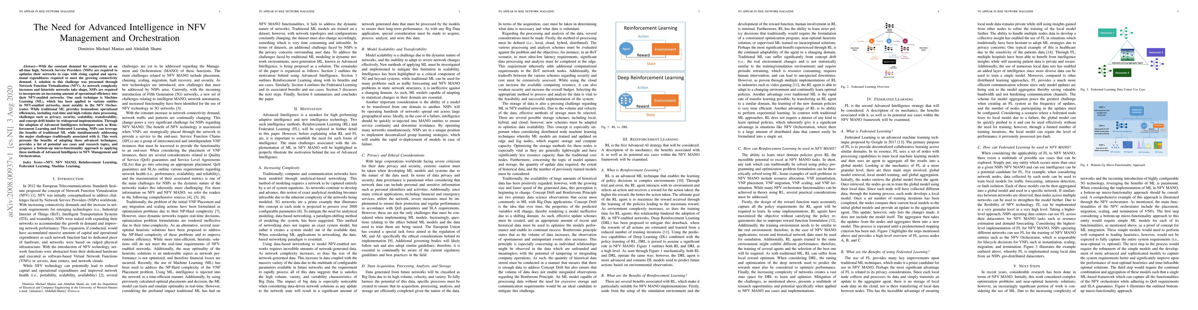 With the constant demand for connectivity at an all-time high, Network Service Providers (NSPs) are required to optimize their networks to cope with rising capital and operational expenditures required to meet the growing connectivity demand. A solution to this challenge was presented through Network Function Virtualization (NFV). As network complexity increases and futuristic networks take shape, NSPs are required to incorporate an increasing amount of operational efficiency into their NFV-enabled networks. One such technique is Machine Learning (ML), which has been applied to various entities in NFV-enabled networks, most notably in the NFV Orchestrator. While traditional ML provides tremendous operational efficiencies, including real-time and high-volume data processing, challenges such as privacy, security, scalability, transferability, and concept drift hinder its widespread implementation. Through the adoption of Advanced Intelligence techniques such as Reinforcement Learning and Federated Learning, NSPs can leverage the benefits of traditional ML while simultaneously addressing the major challenges traditionally associated with it. This work presents the benefits of adopting these advanced techniques, provides a list of potential use cases and research topics, and proposes a bottom-up micro-functionality approach to applying these methods of Advanced Intelligence to NFV Management and Orchestration.