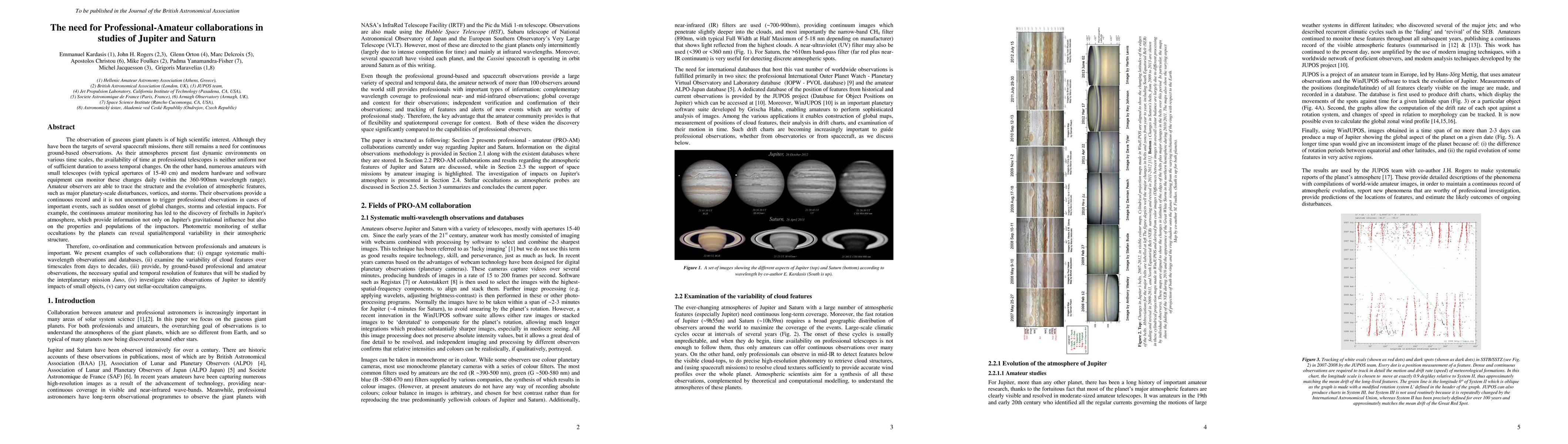 This paper highlights the necessity of professional-amateur collaborations for continuous ground-based observations of Jupiter and Saturn, emphasizing how amateurs' daily monitoring with modern equipment can complement professional telescopes, providing continuous records and triggering professional observations during significant events. Such collaborations enhance the study of atmospheric dynamics and variability.