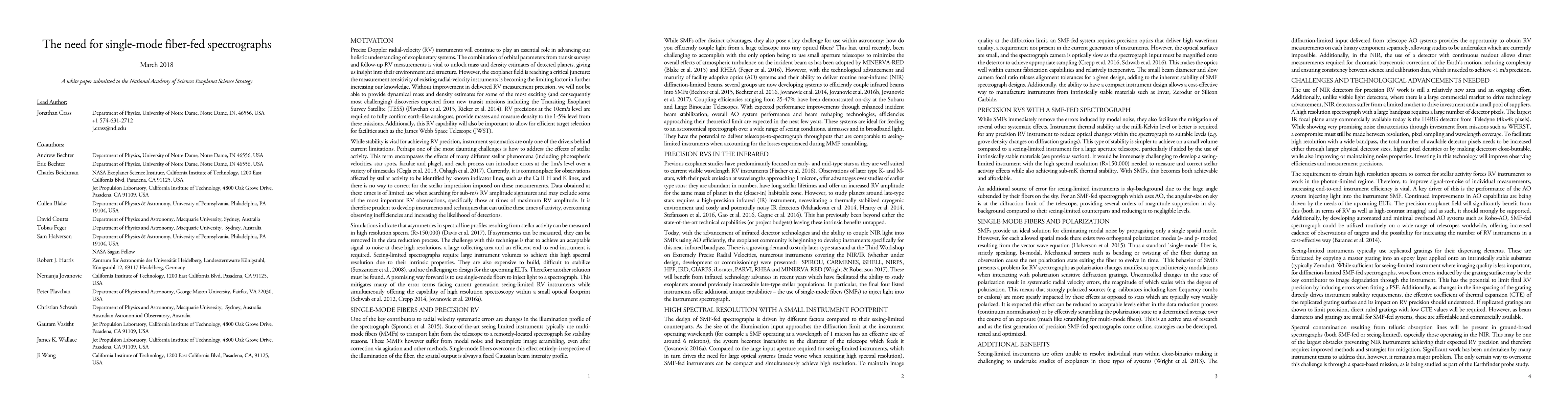 The paper discusses the necessity for improved radial-velocity instruments to advance exoplanet research, emphasizing the need for precision at the 10 cm/s level. It proposes the use of single-mode fiber-fed spectrographs to enhance measurement precision and enable high-resolution spectroscopy, addressing current limitations in exoplanet mass and density estimation.