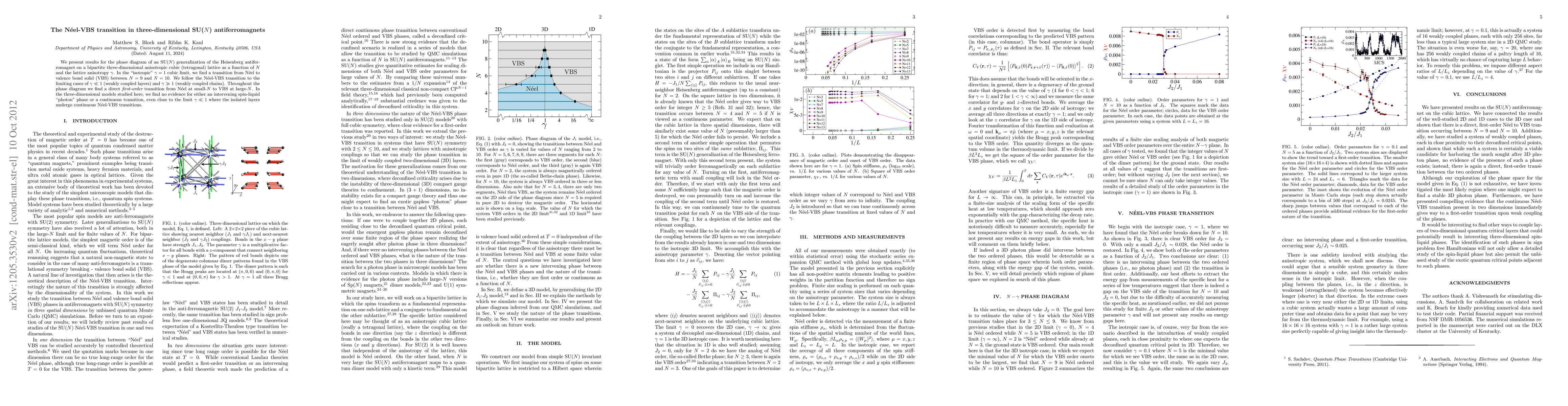 The paper presents detailed quantum Monte Carlo simulations and exact diagonalization results for the SU(N) antiferromagnet on a three-dimensional anisotropic lattice, providing a comprehensive analysis of the Néel-VBS transition.