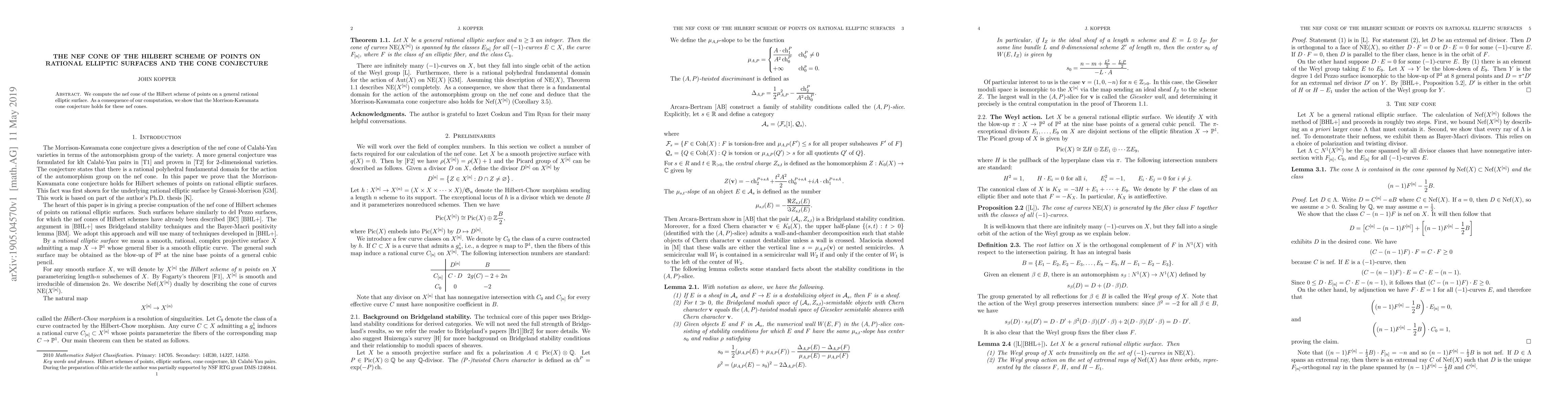 This paper computes the nef cone of the Hilbert scheme of points on rational elliptic surfaces, proving that the Morrison-Kawamata cone conjecture is valid for these nef cones. The findings provide insights into the geometric structure and classification of rational elliptic surfaces.