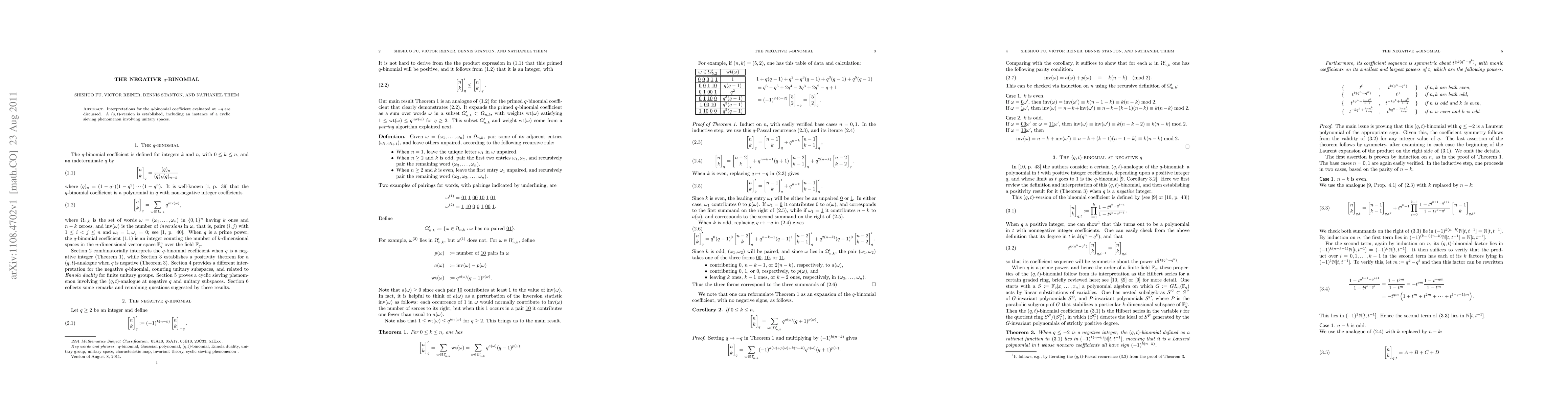 Summary: This paper explores the interpretation of the negative q-binomial coefficient, establishing a (q,t)-version and demonstrating a cyclic sieving phenomenon in unitary spaces, thereby enriching the understanding of q-binomial evaluations at -q.