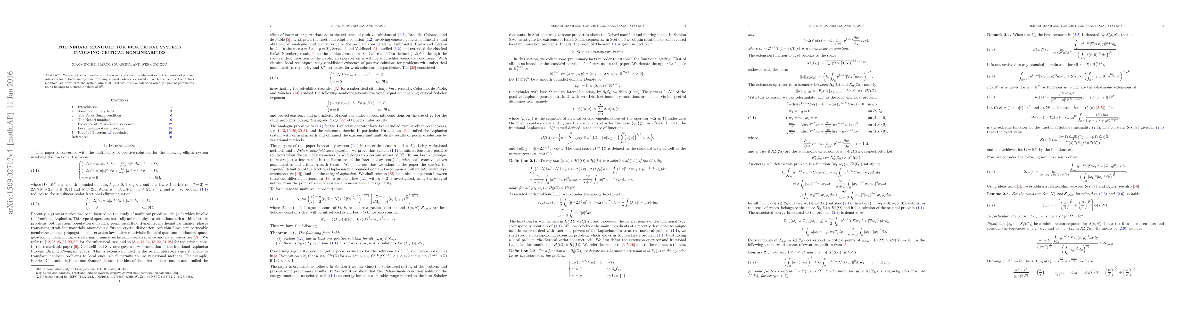 Summary: This paper investigates the influence of mixed concave and convex nonlinearities on the existence of positive solutions for a fractional system with critical Sobolev exponents. Utilizing the Nehari manifold, it demonstrates the presence of at least two positive solutions under specific parameter conditions.